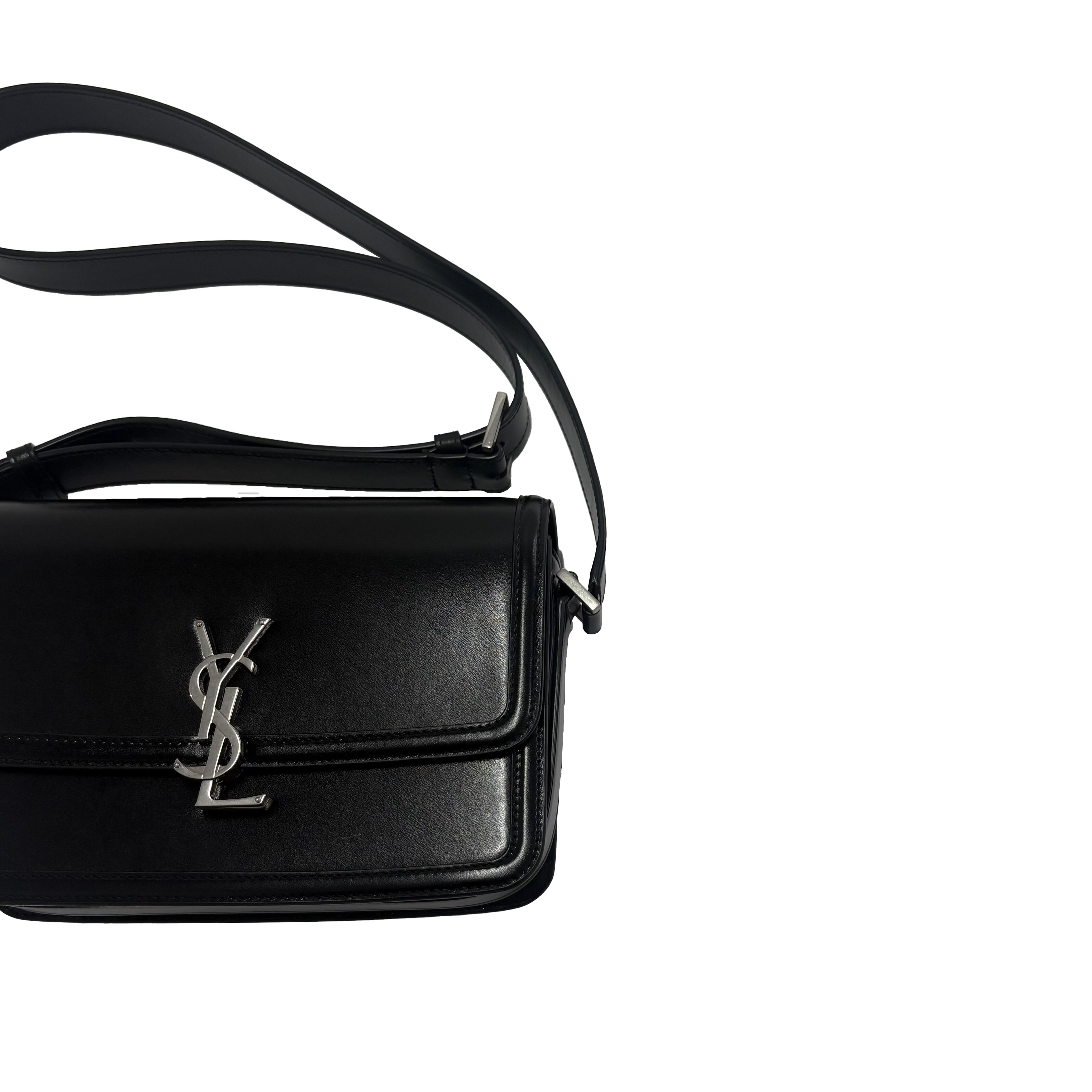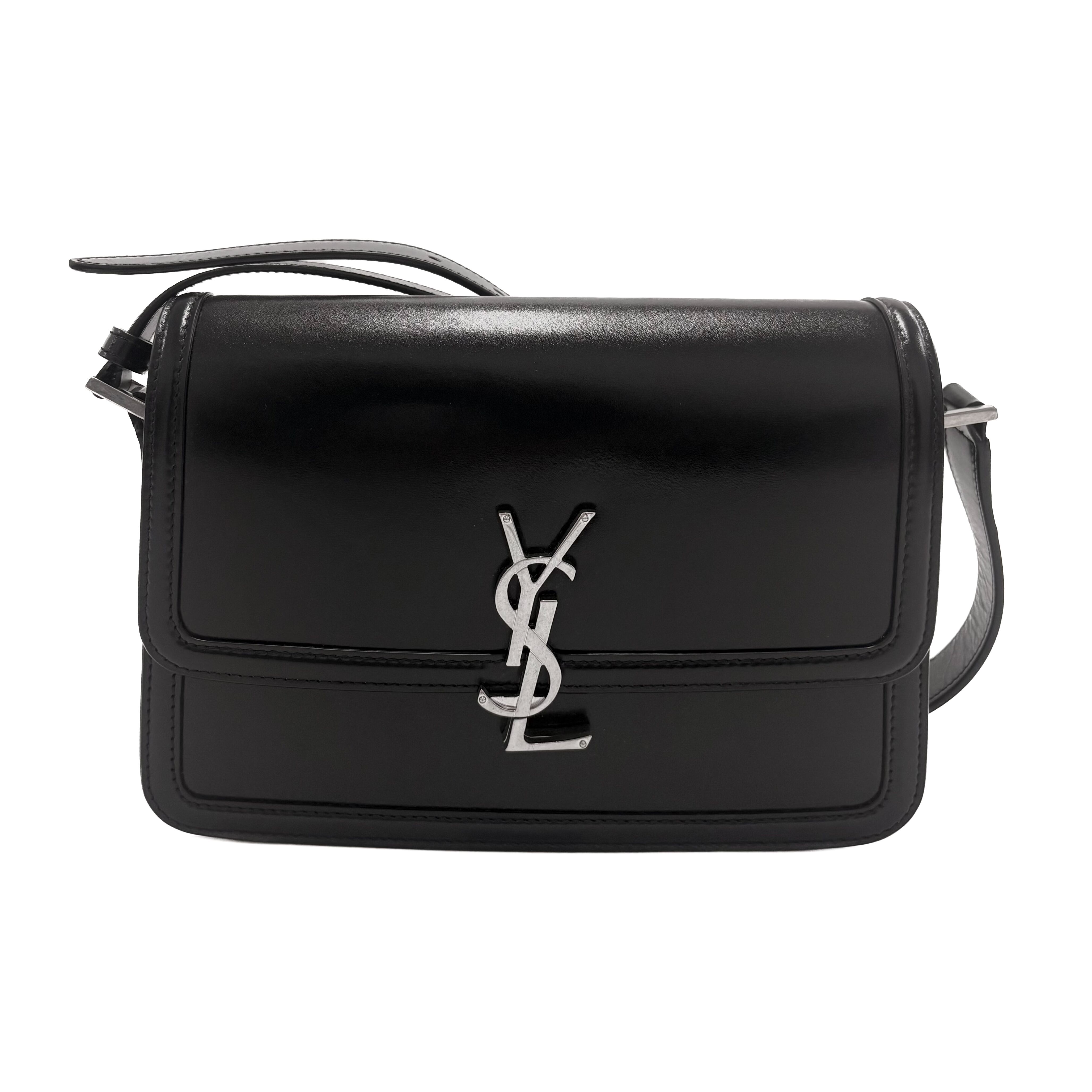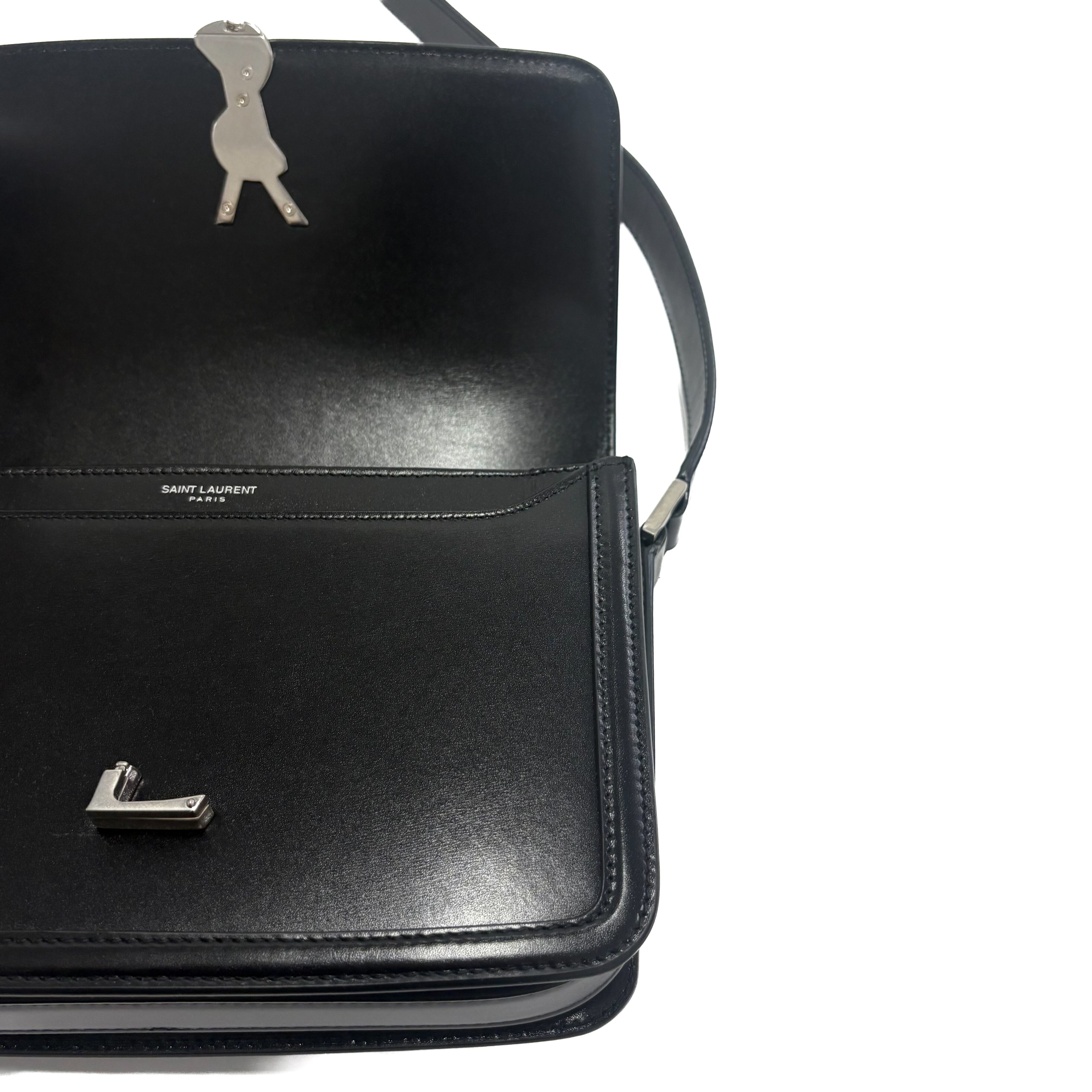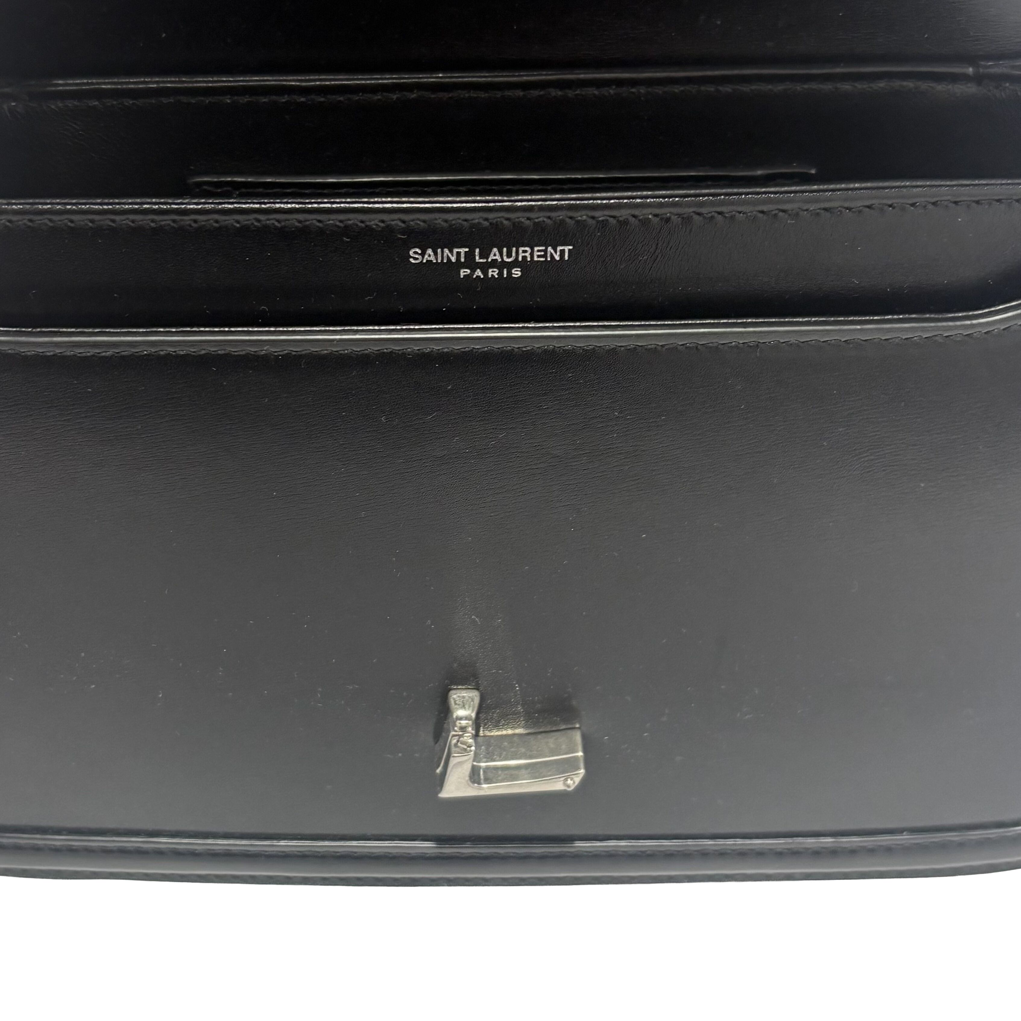アイコニックなYSLシグネチャーが目に飛び込んでくる、フロントフラップ付きメッセンジャーバッグ。