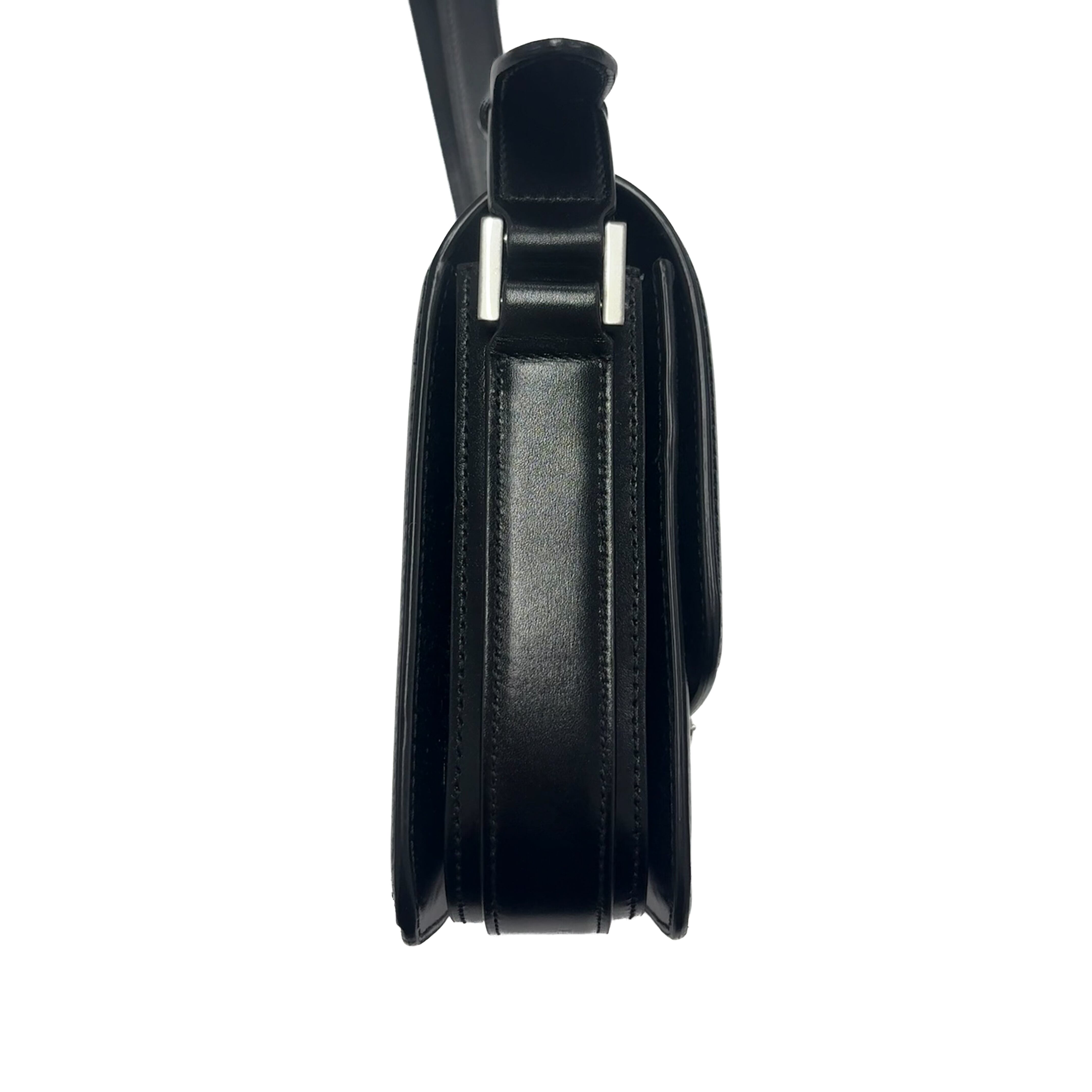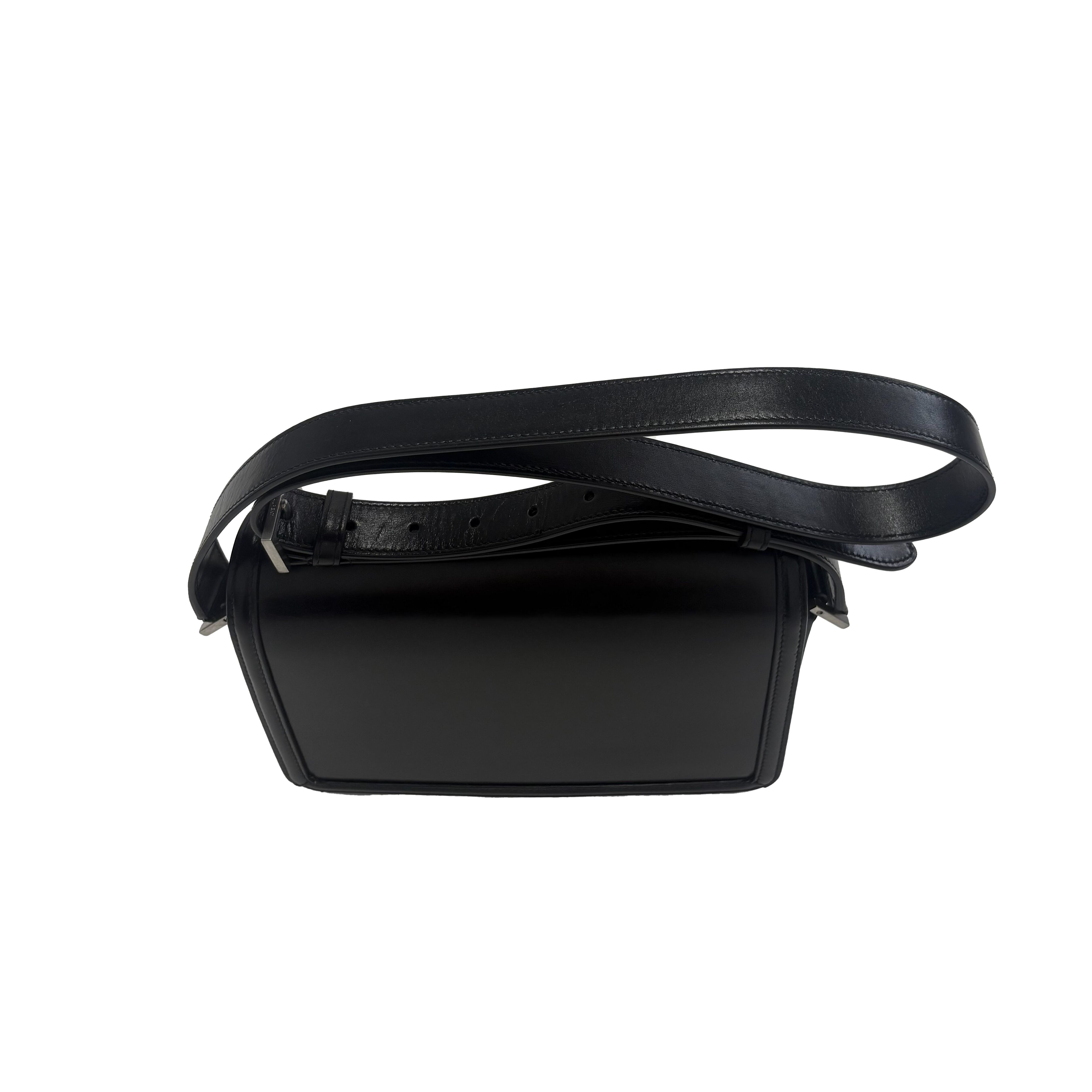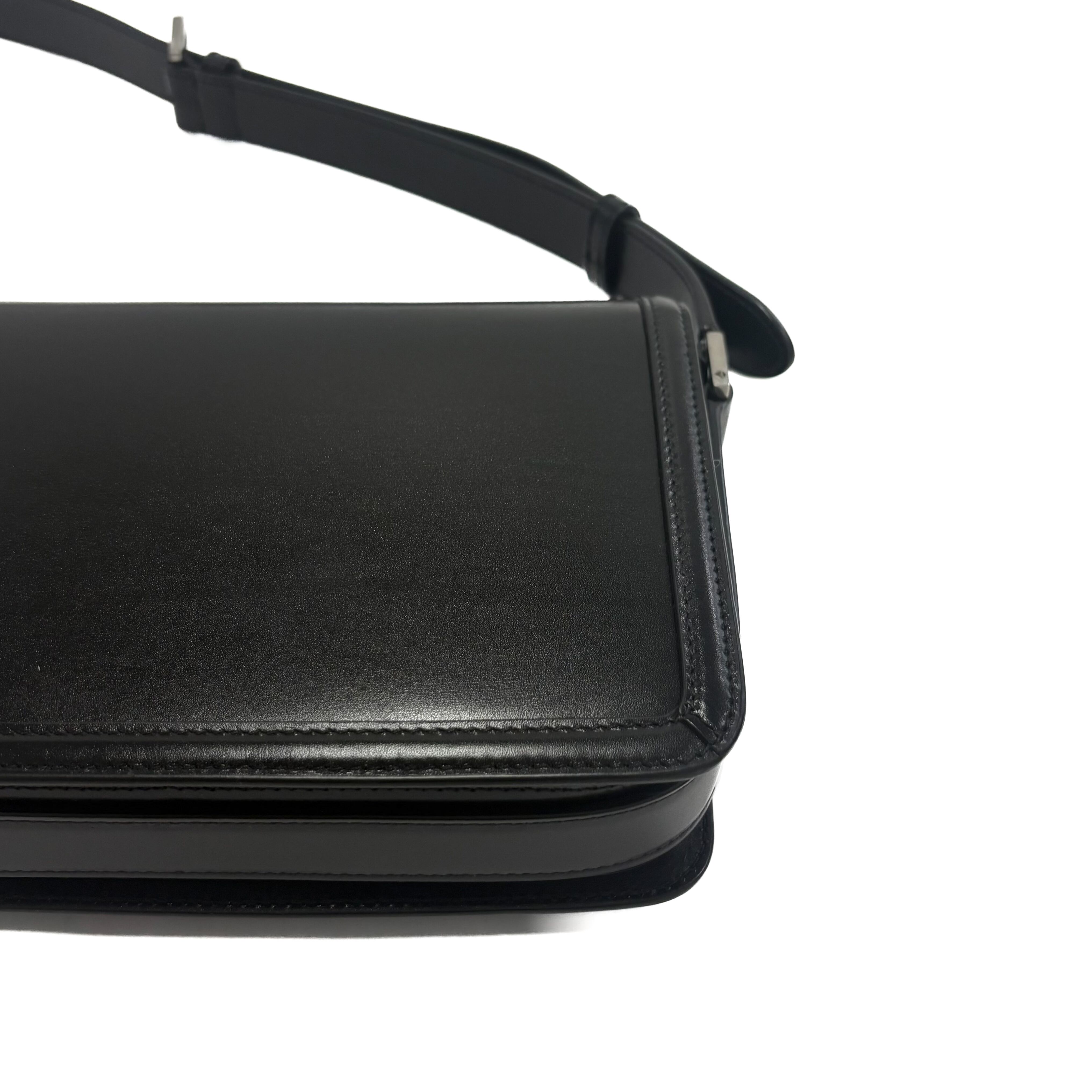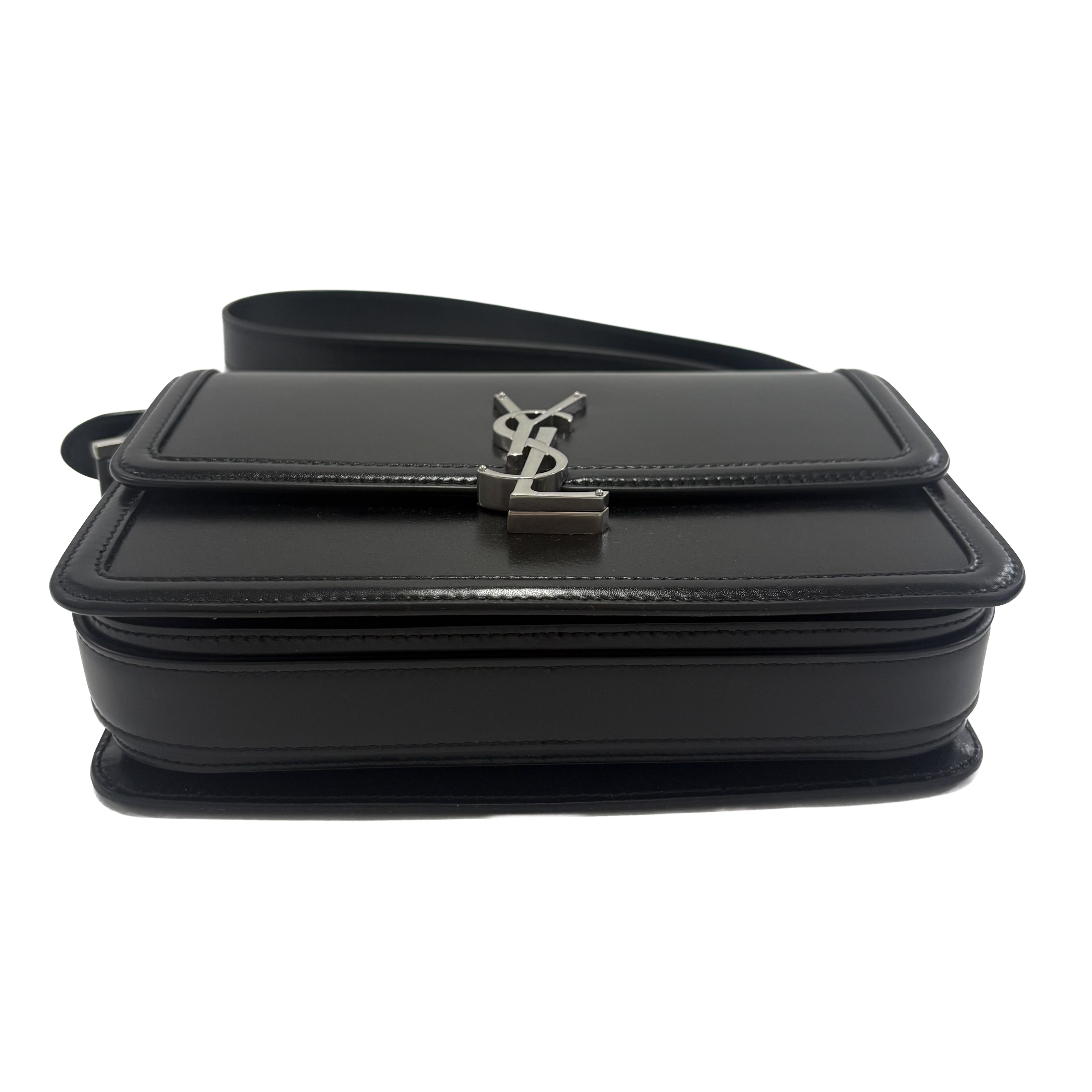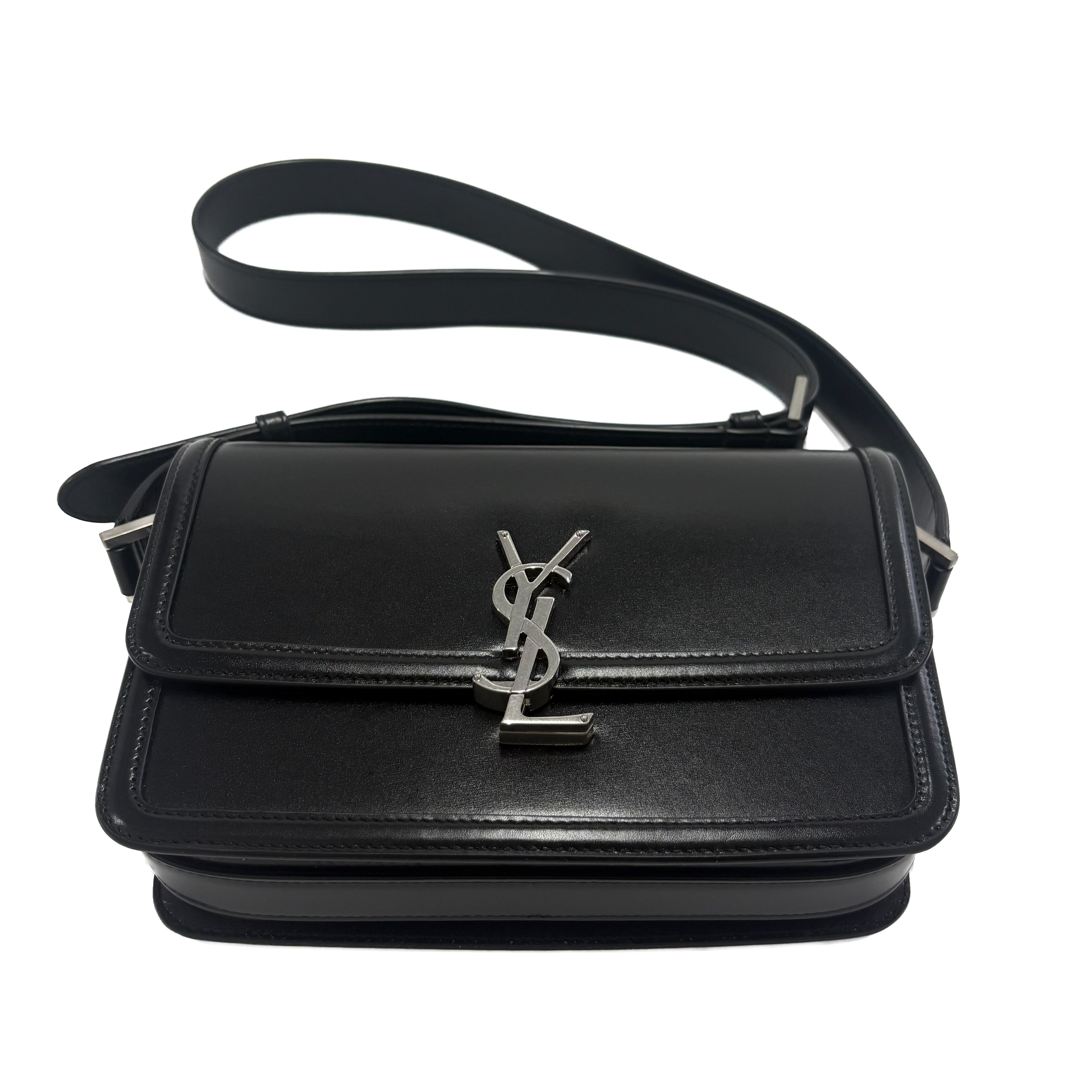 アイコニックなYSLシグネチャーが目に飛び込んでくる、フロントフラップ付きメッセンジャーバッグ。