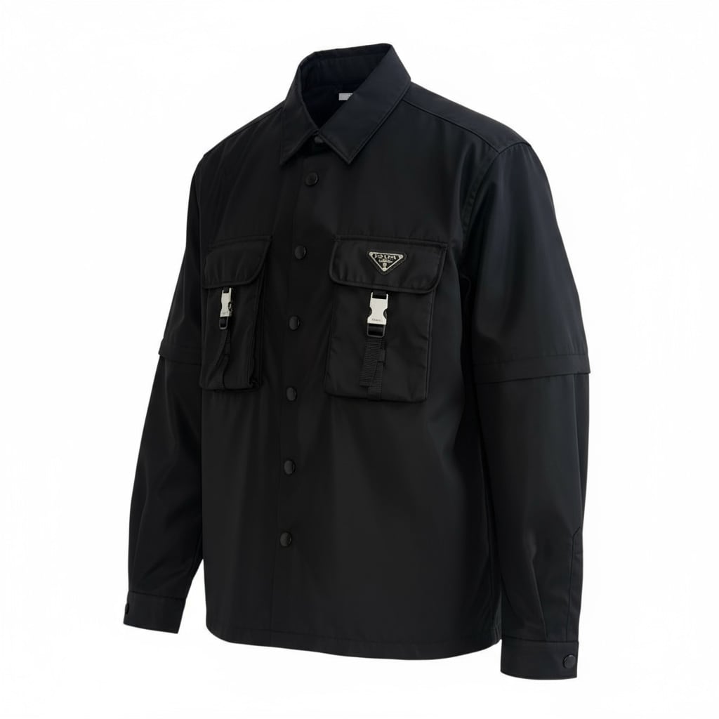 【PRADA】ロゴ入ベルトポケット付シャツジャケット(S)