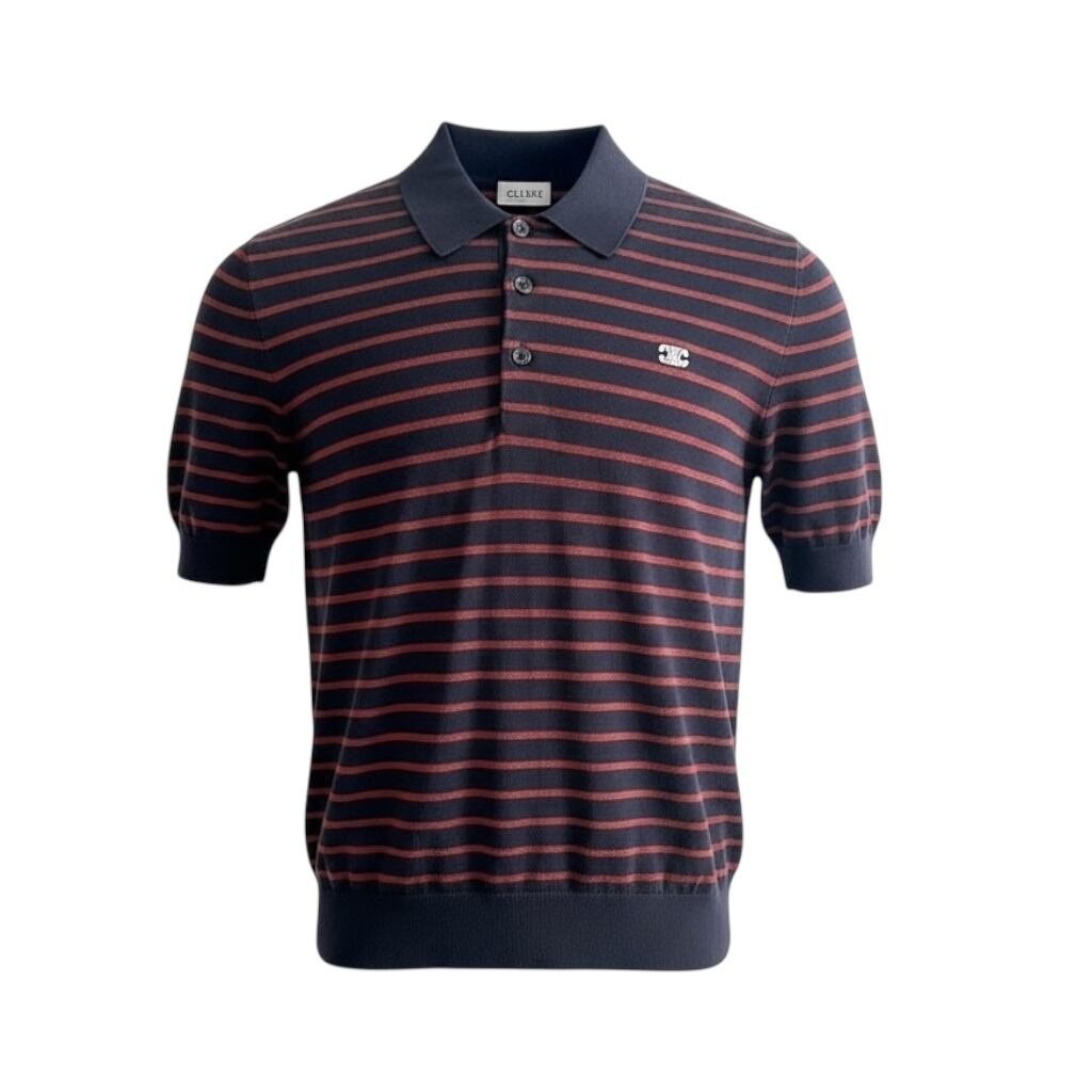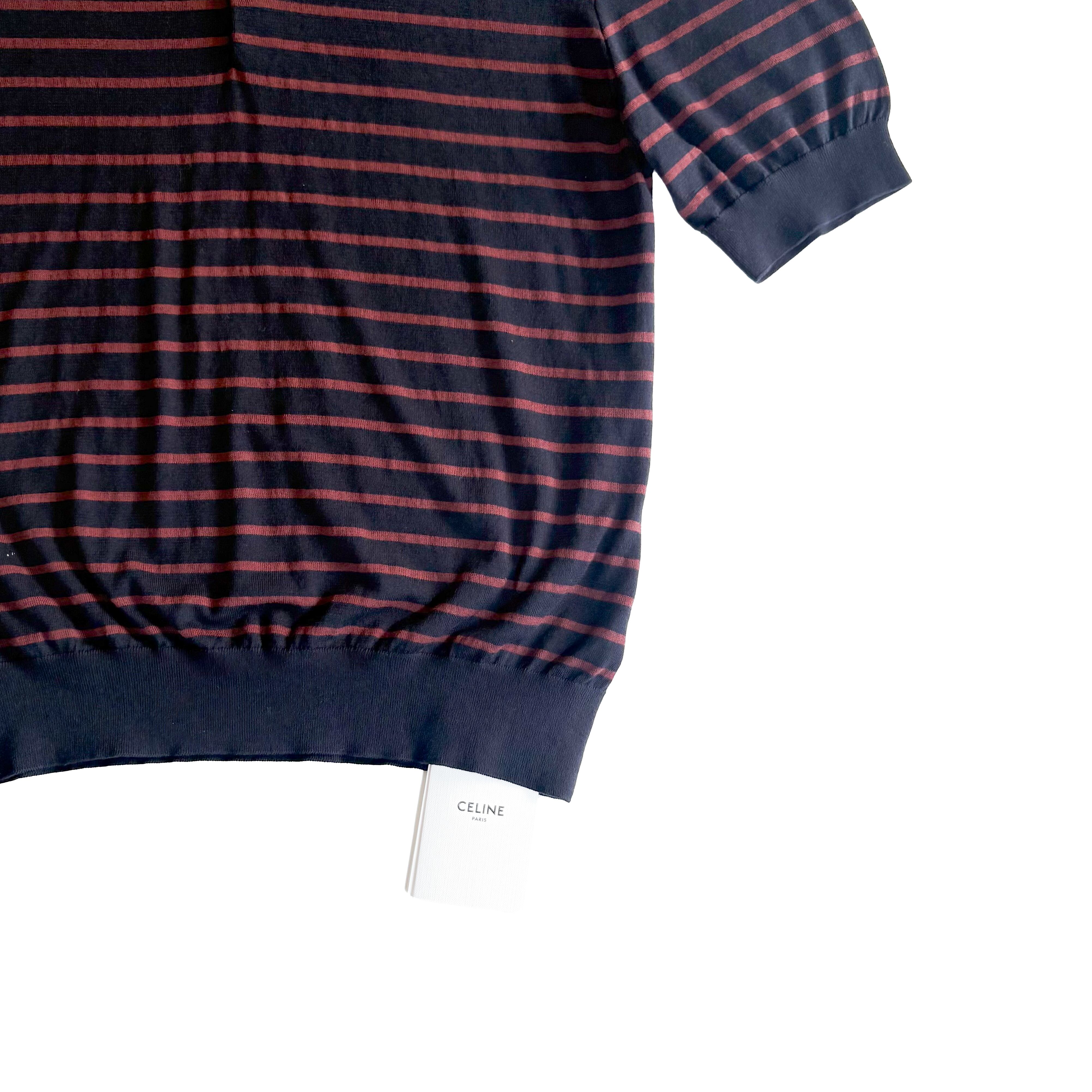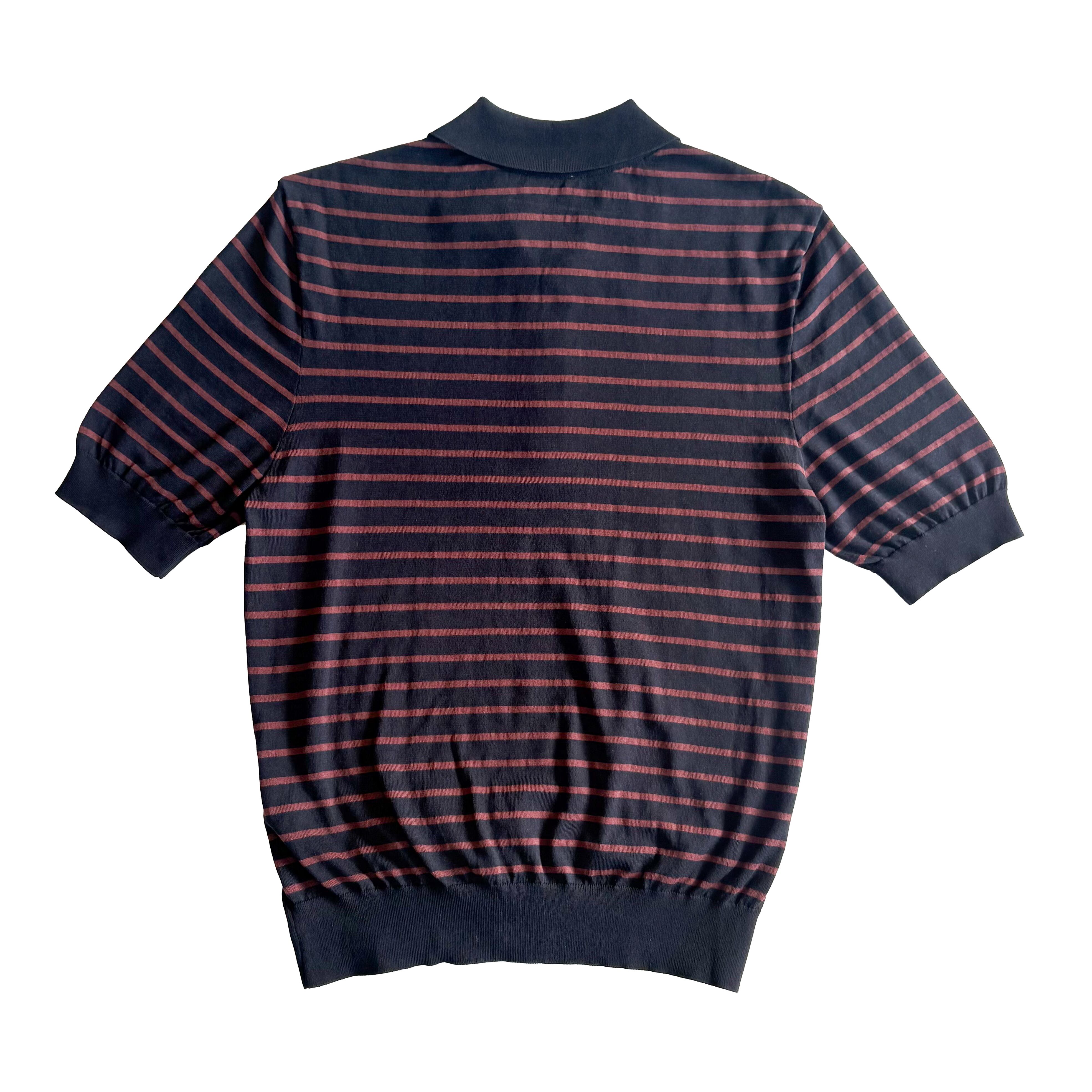 細かいボーダーデザインでネイビー×バーガンディー配色が上品な印象にしてくれます。