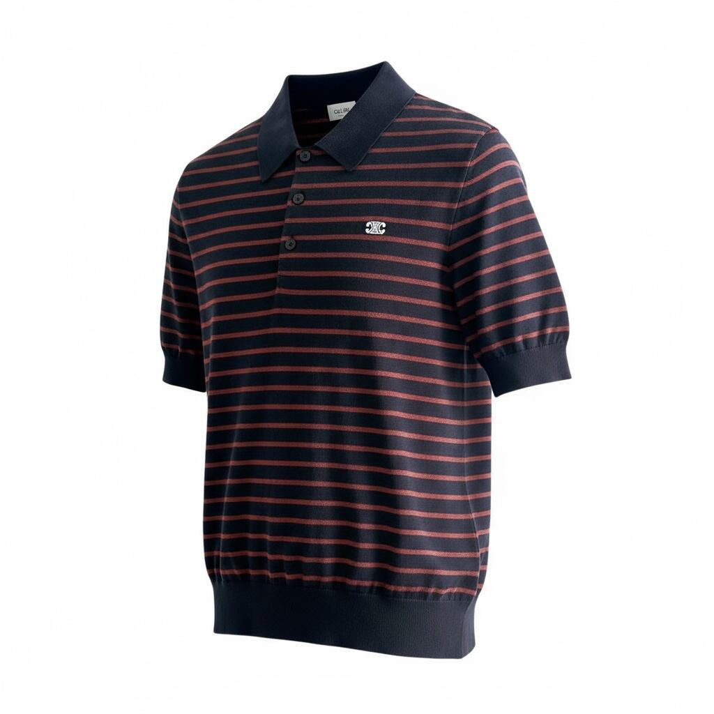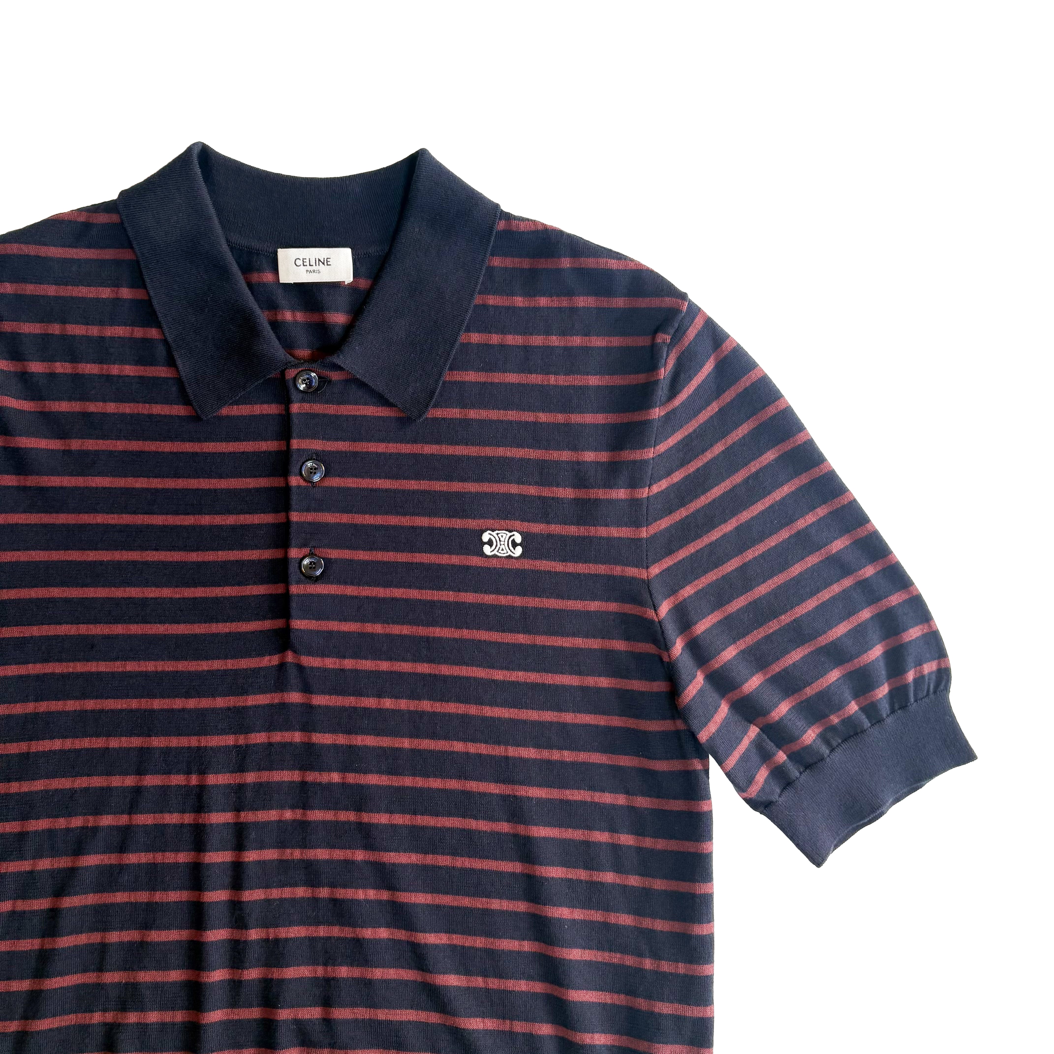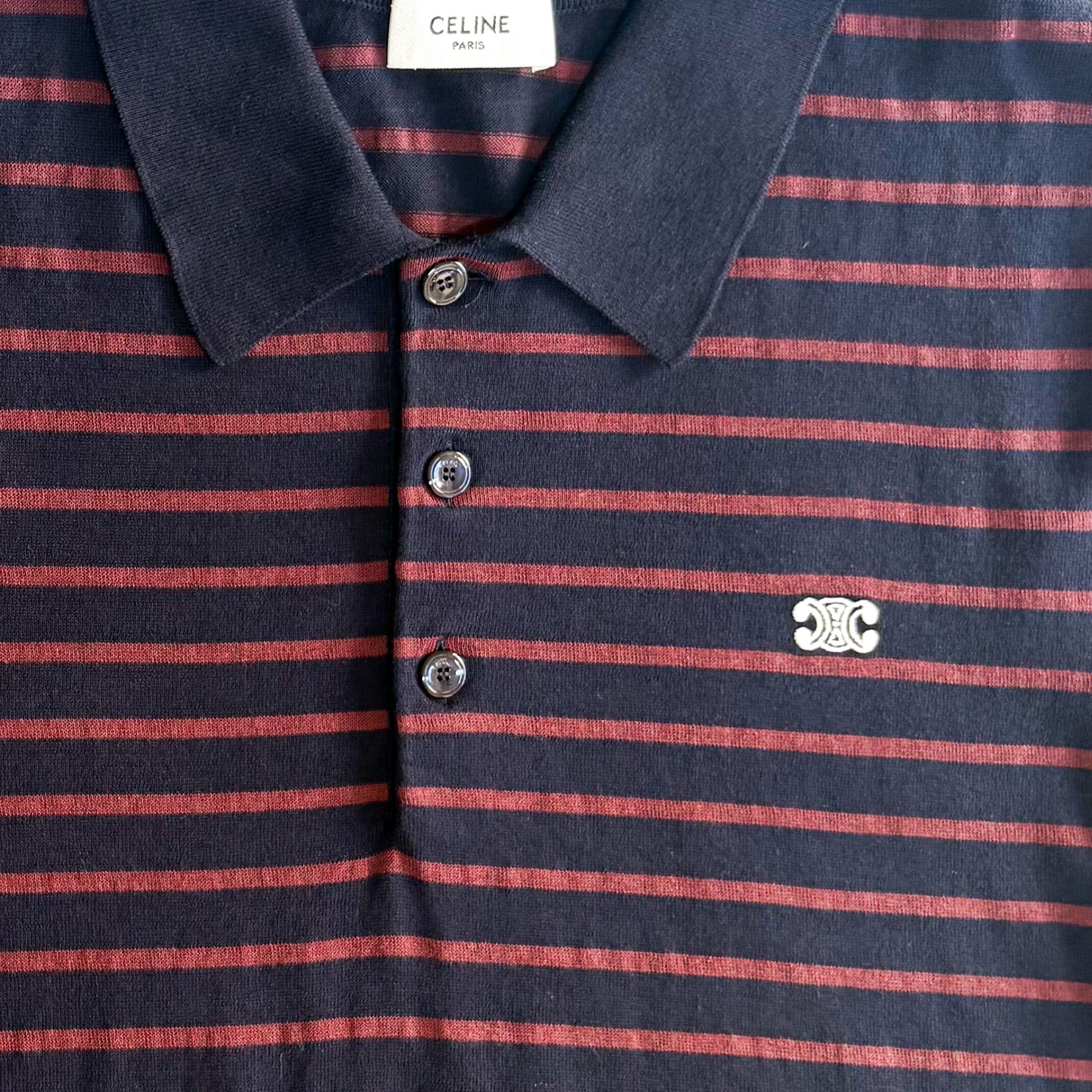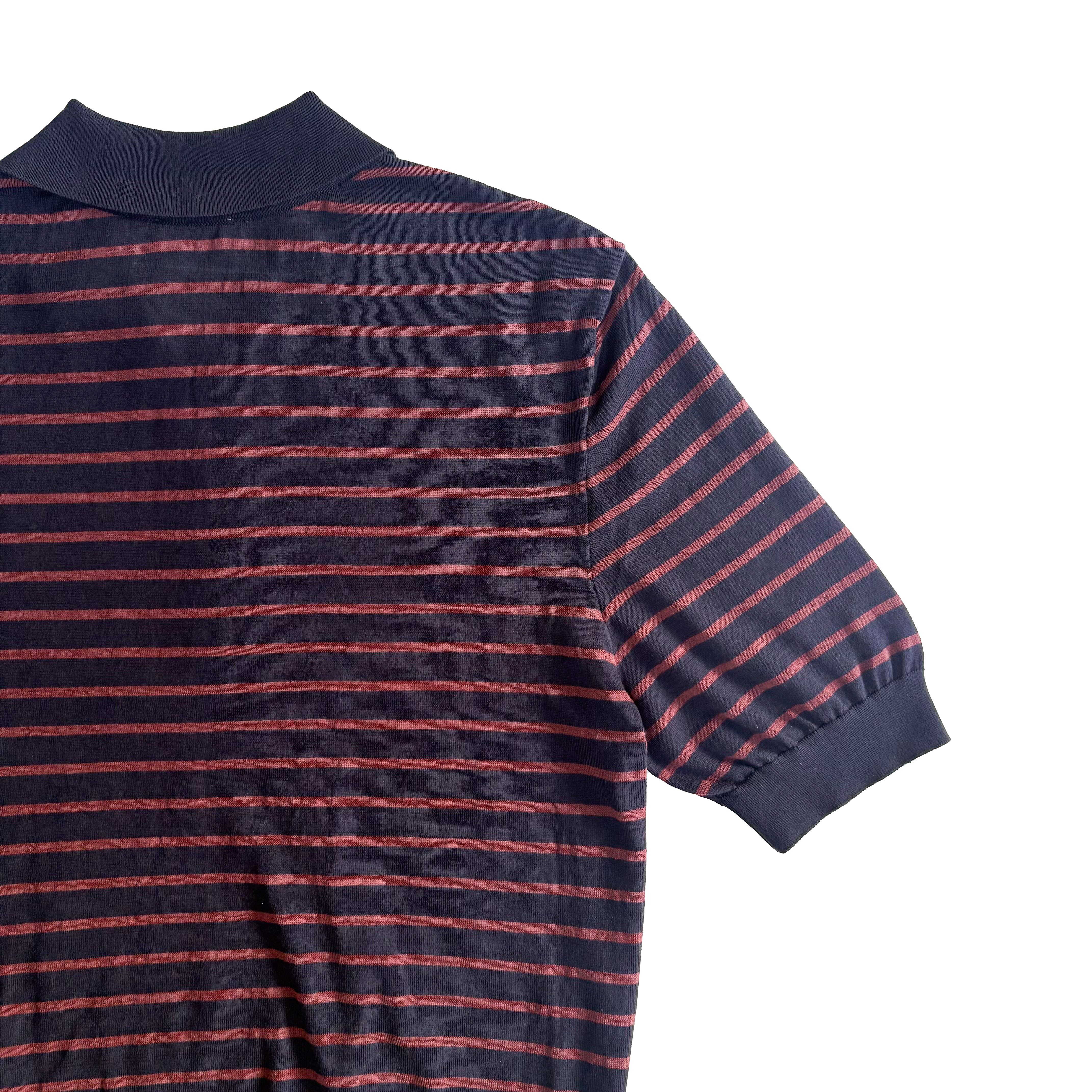 細かいボーダーデザインでネイビー×バーガンディー配色が上品な印象にしてくれます。