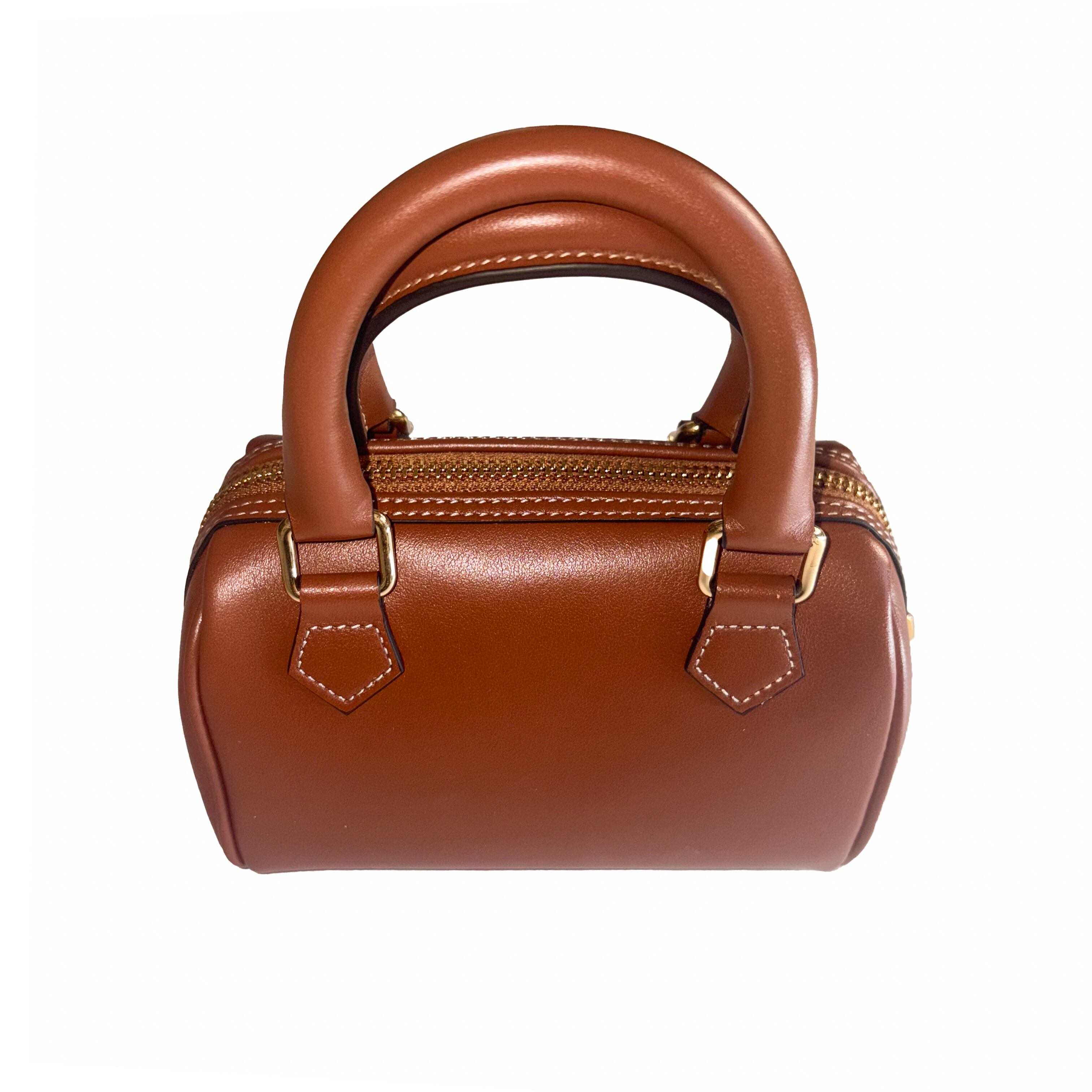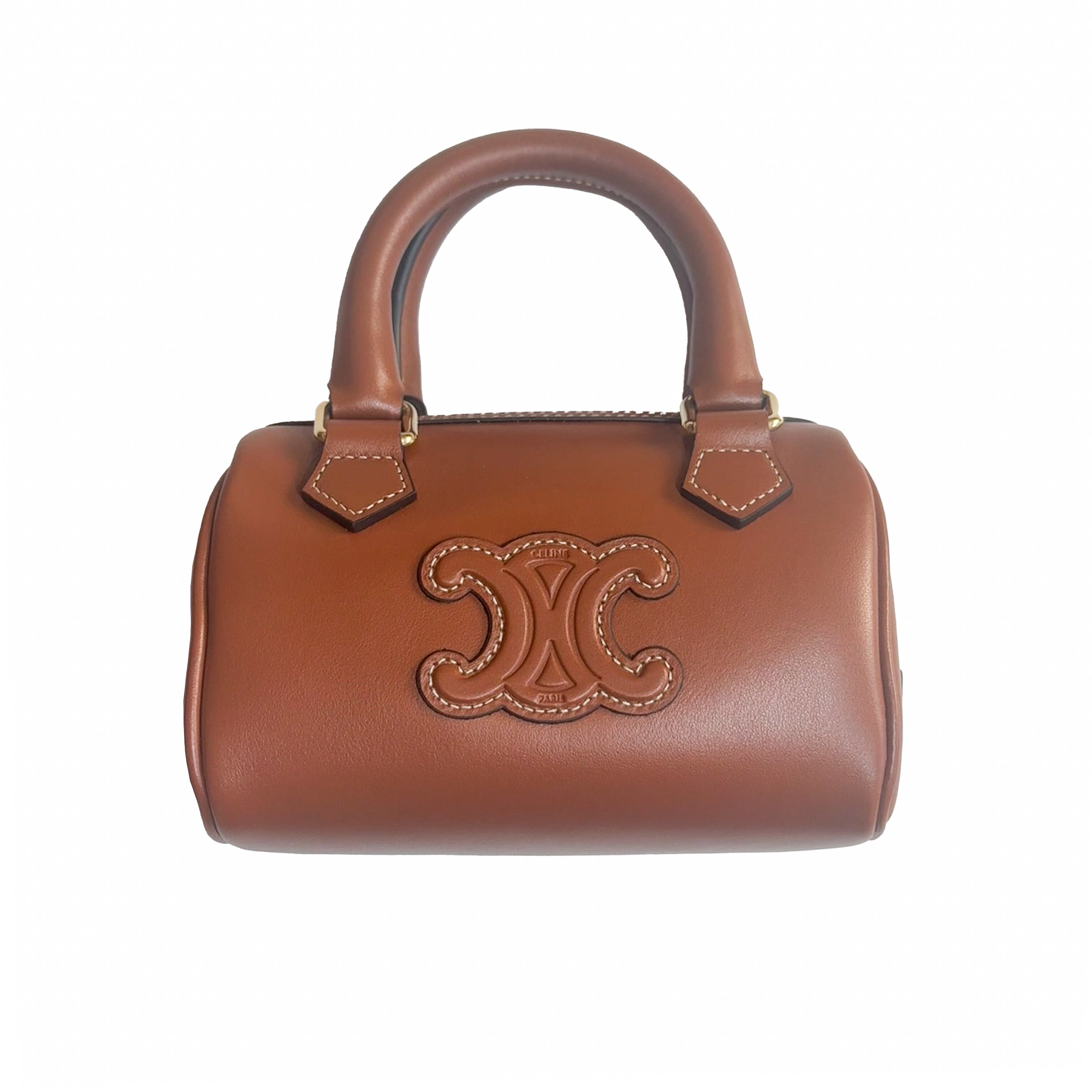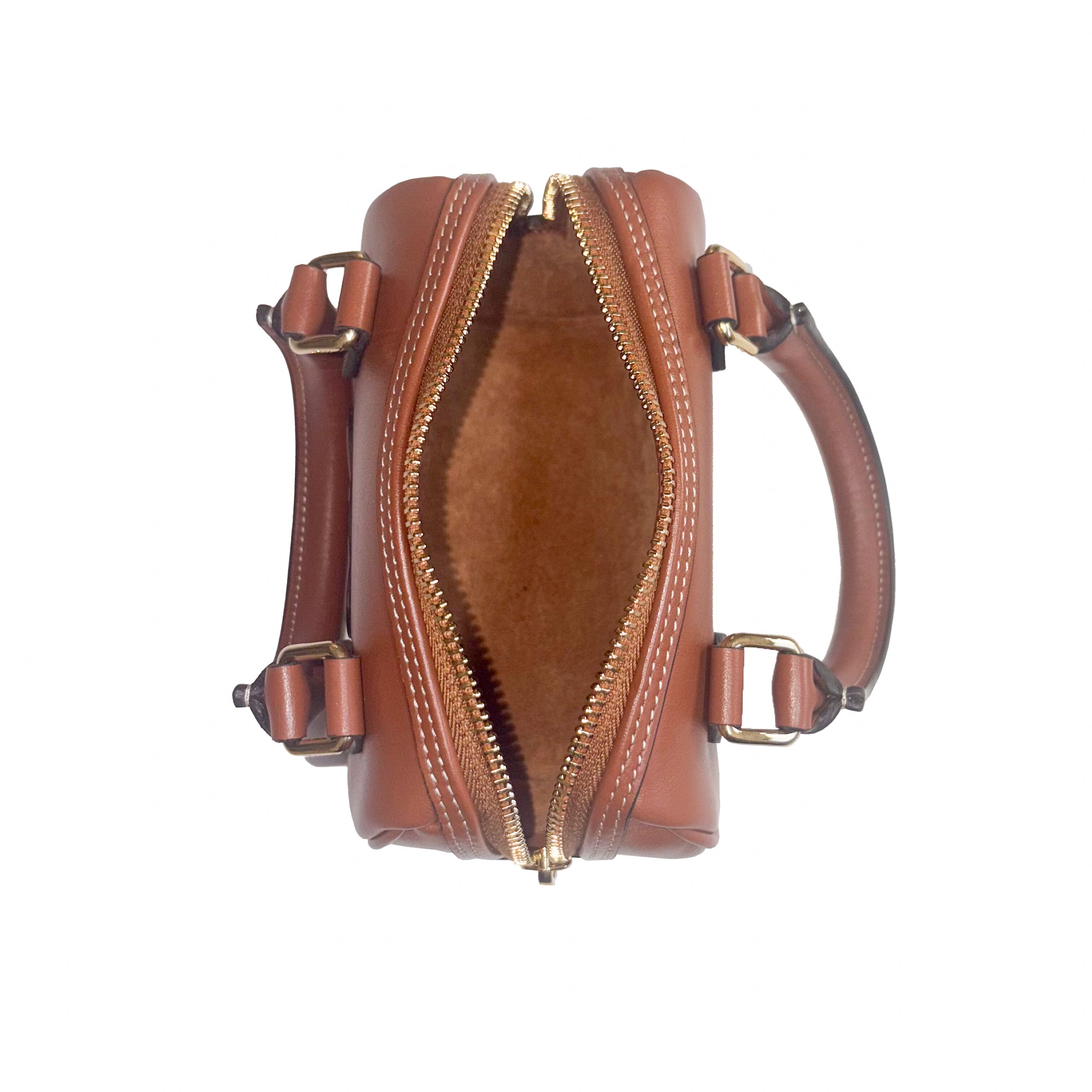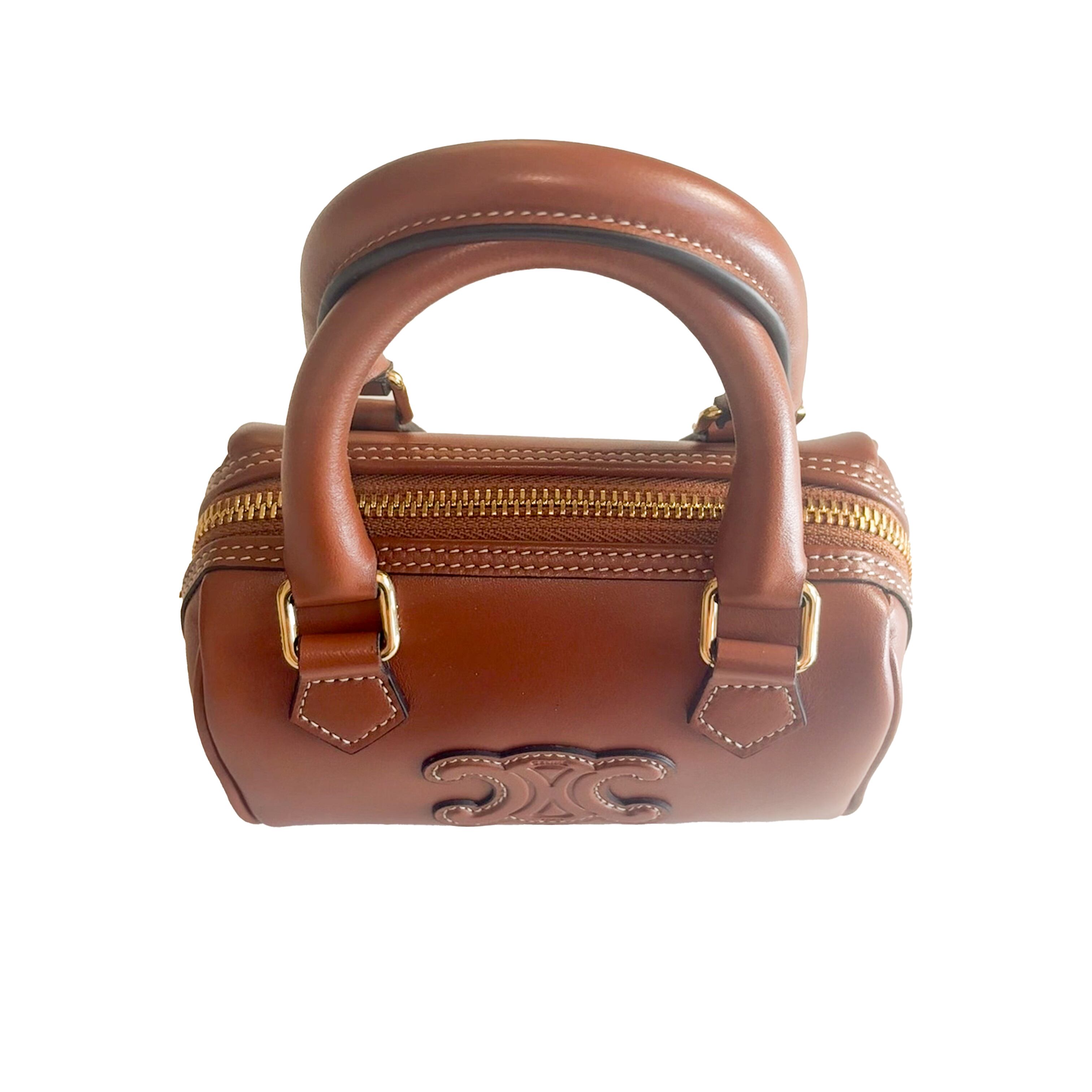 ブランドを象徴するトリオンフをあしらったボストン型のハンドバッグ。上質な風合いとステッチ使いがアクセントになっています。広いマチ幅と内ポケットを備えており収納力も抜群。