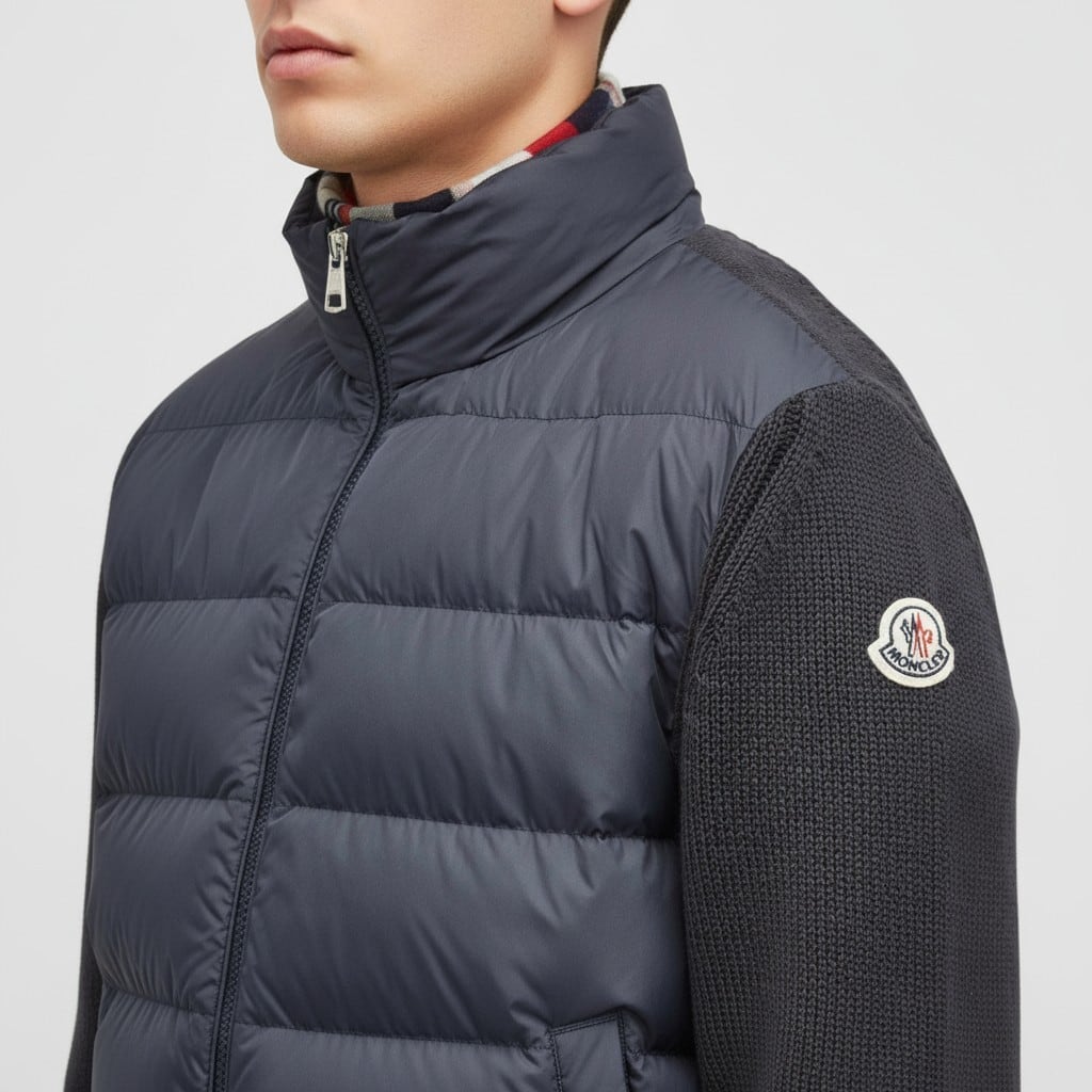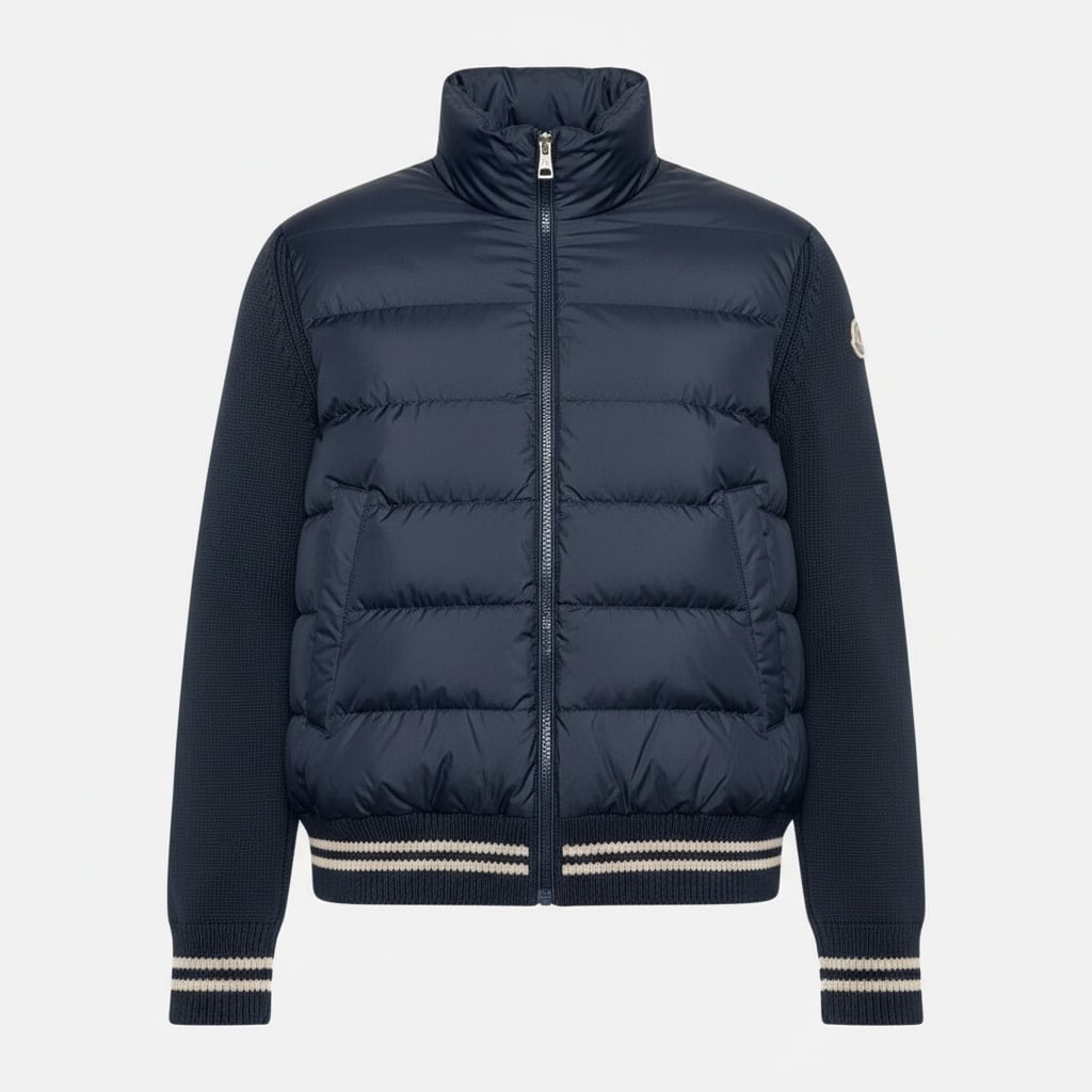 コットン素材を使用した前面がダウンパディング入りのカーディガンは、一年を通して着用できる暖かなアイテムです。
