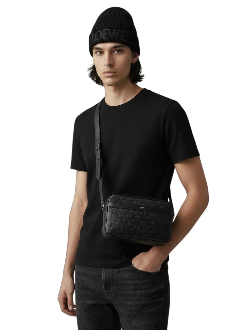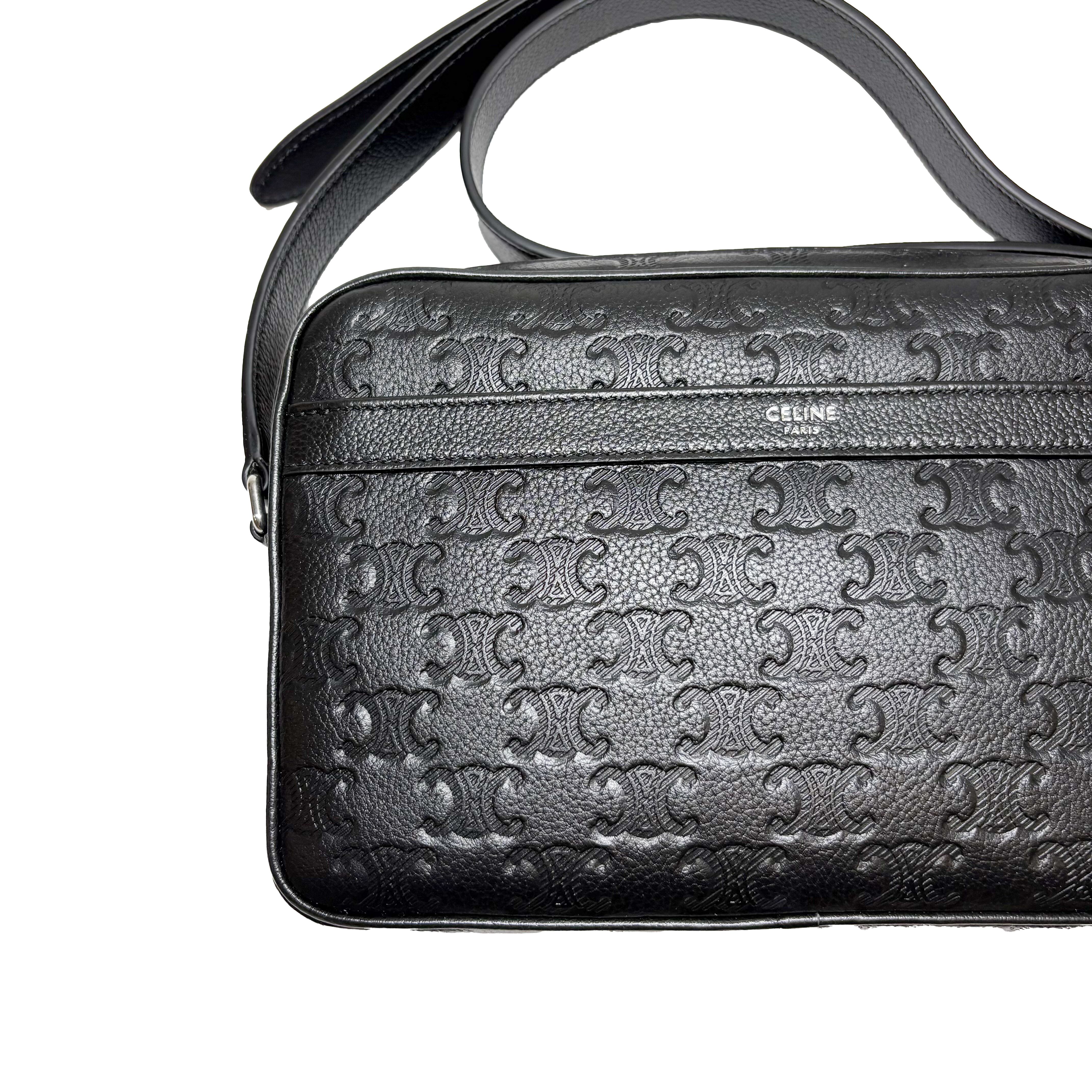トリオンフのエンボス加工入りされており、立体的ロゴがシックなデザインが特徴のバッグ。
