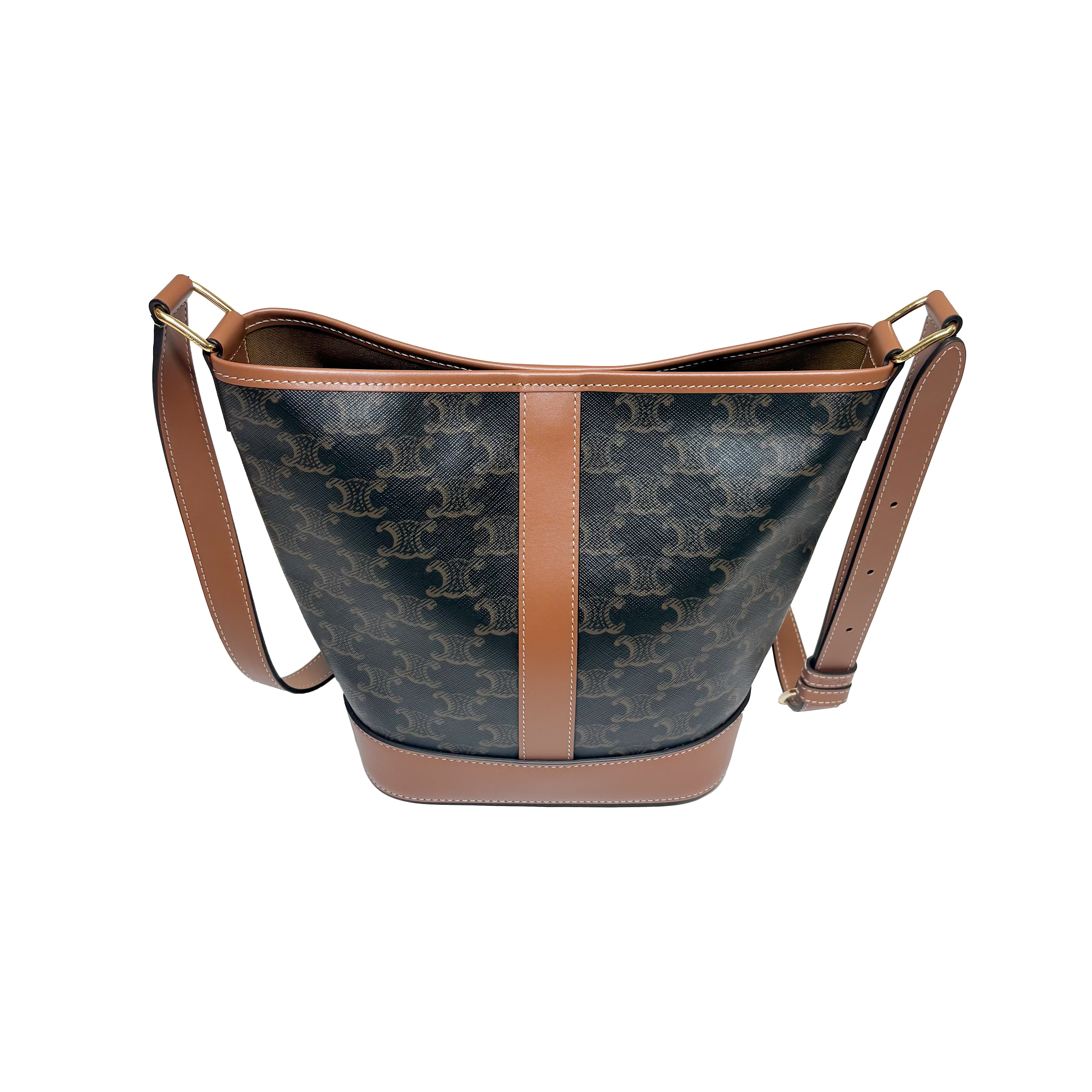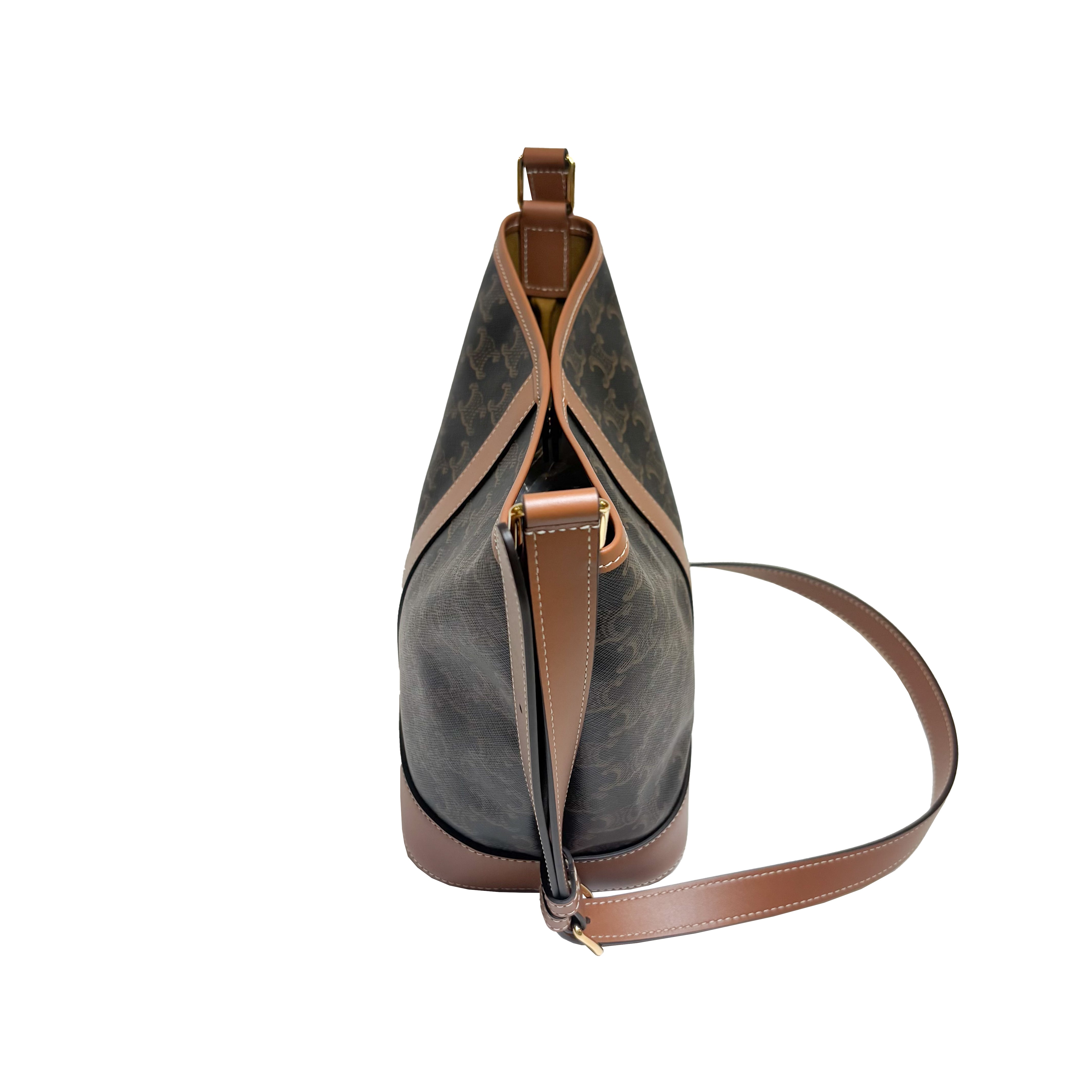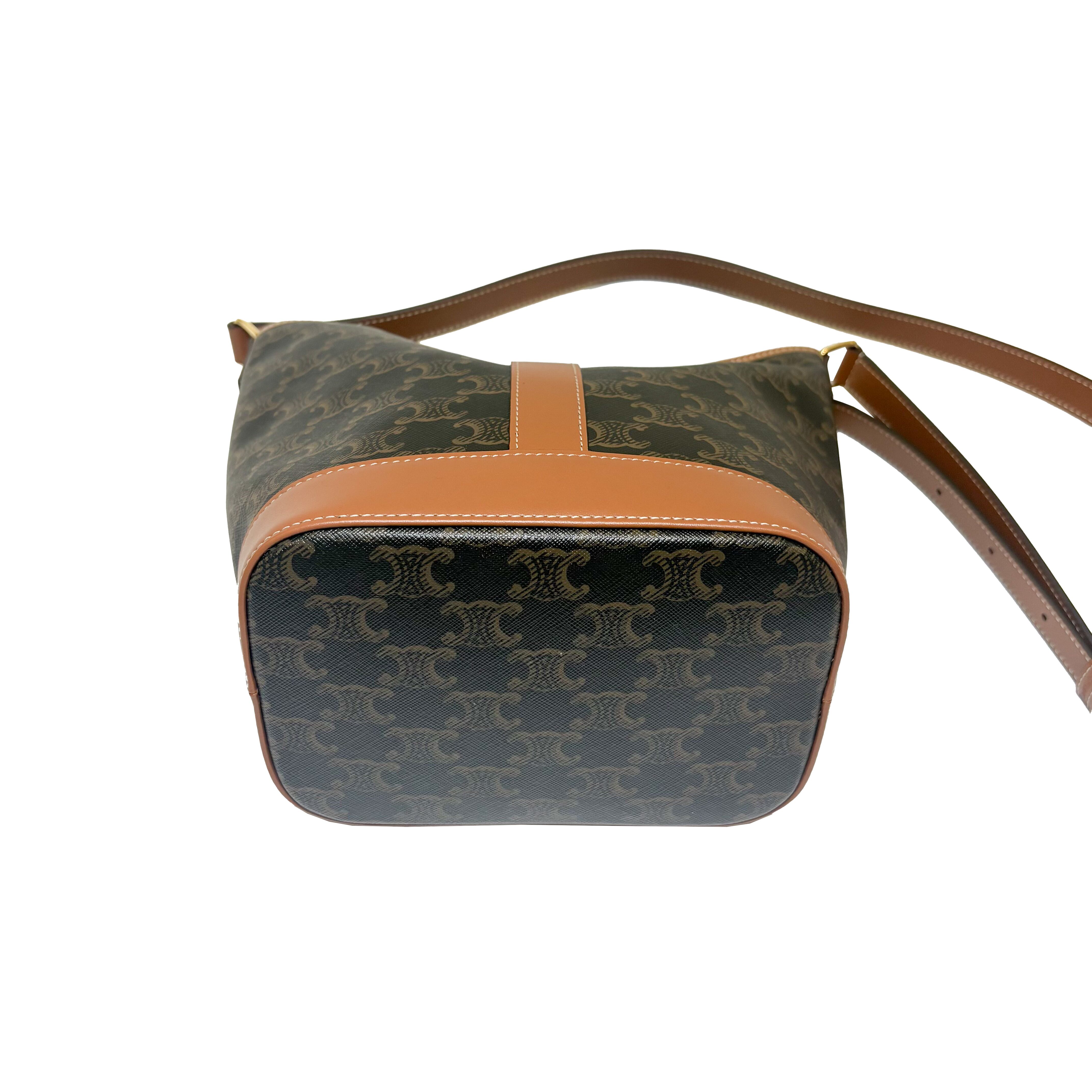 "タイムレス" をコンセプトにデザインされた「TRIOMPHE CANVAS」を使用したコレクション。古き良きオールド・セリーヌを感じさせる "トリオンフモチーフ " はCELINEのアイコンシンボル。本作はクラシカルなトリオンフ キャンバスとレザーディテールを上品に組み合わせたバケットバッグです。普段使用しやすいバケットタイプで、大きさも程よくどんなコーディネートとでも合います。