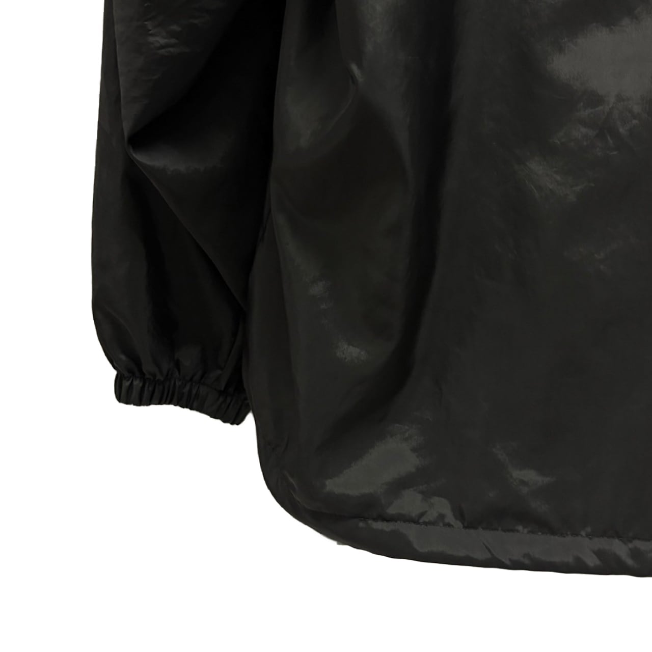 後ろにブランドロゴが記載された、ポリエステルのジャケット。