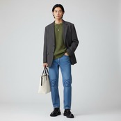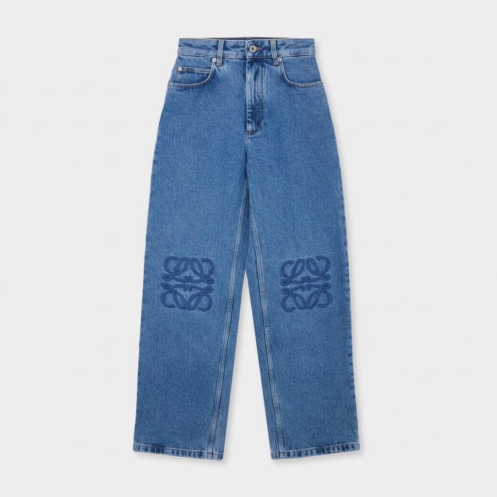 ミディアムウェイトのウォッシュドコットンデニムを採用したジーンズで、膝にアナグラム刺繍が施されています。