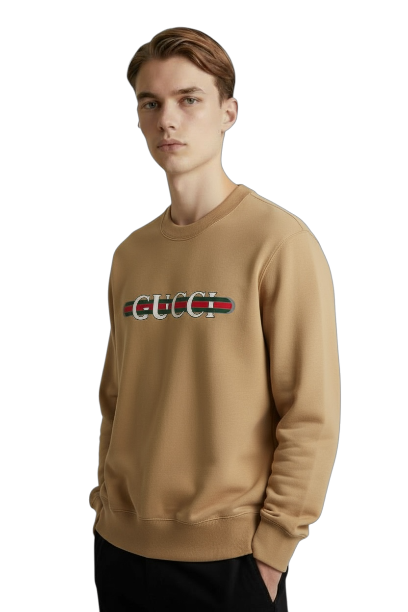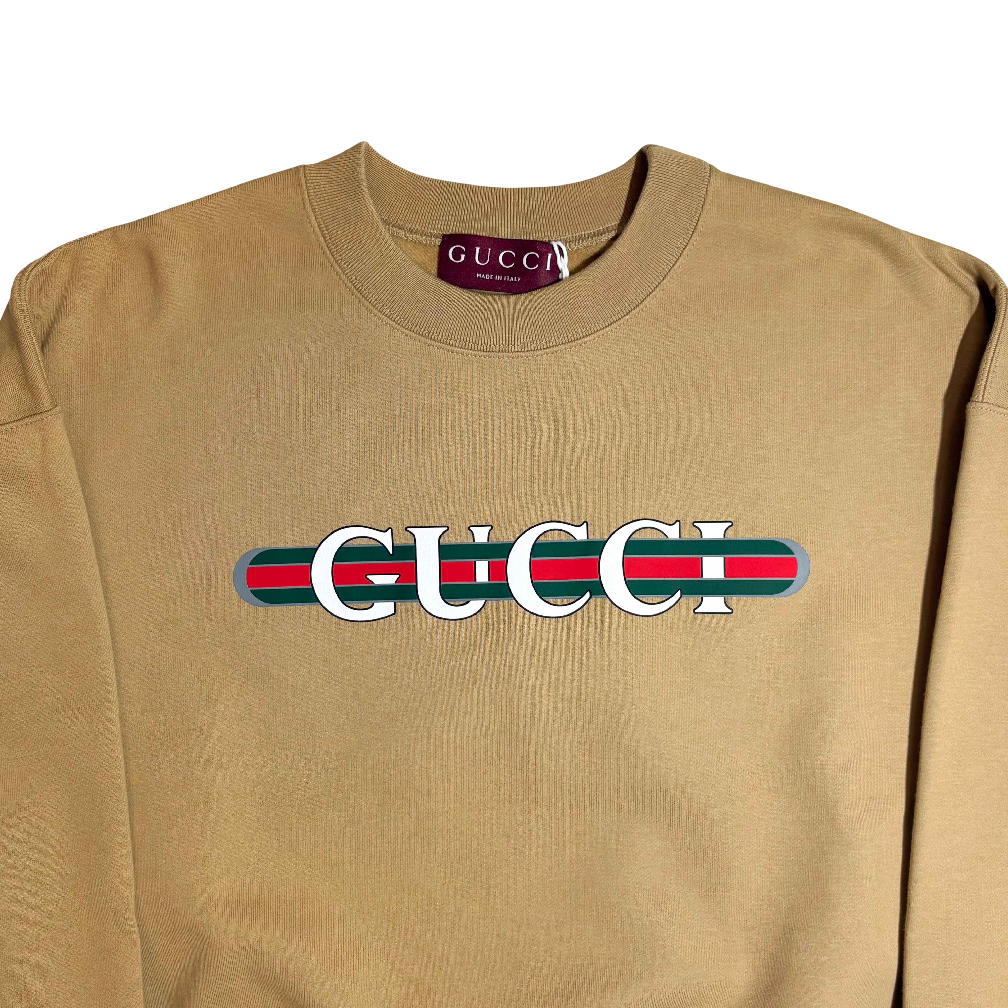 キャメルの色味とGUCCIを代表する色味のバランスが映えてこのトップスメインでコーディネートが決まります。