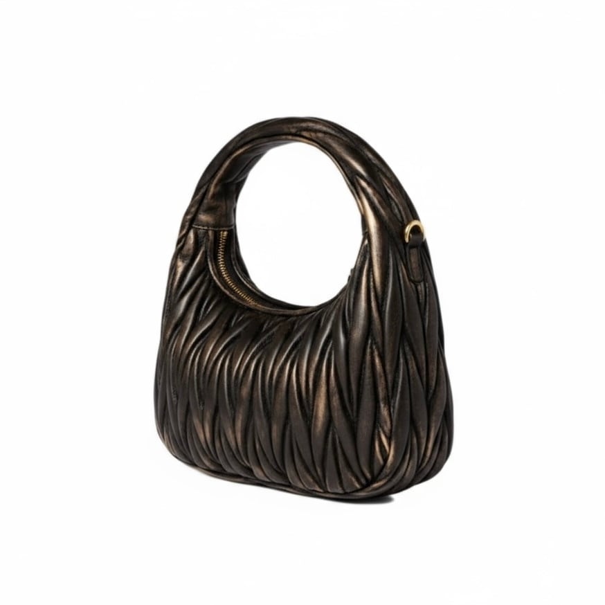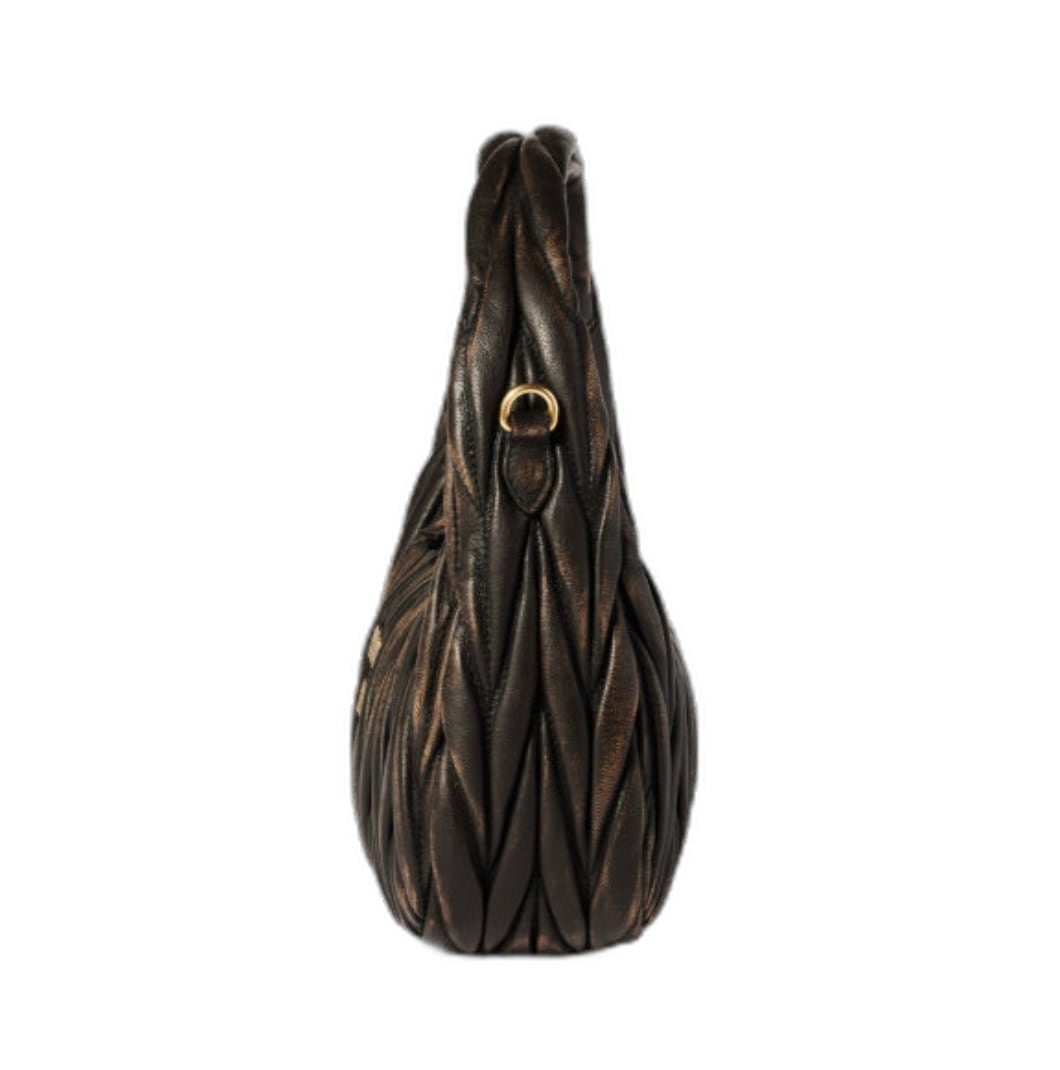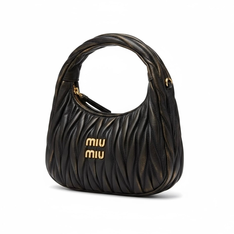 ワンダーバッグは、ヴィンテージ風のマテラッセラムレザーで再解釈され、ミュウミュウの洗練されたクラフツマンシップとアイコニックな多用途性を象徴するユニークなディテールが施されています。