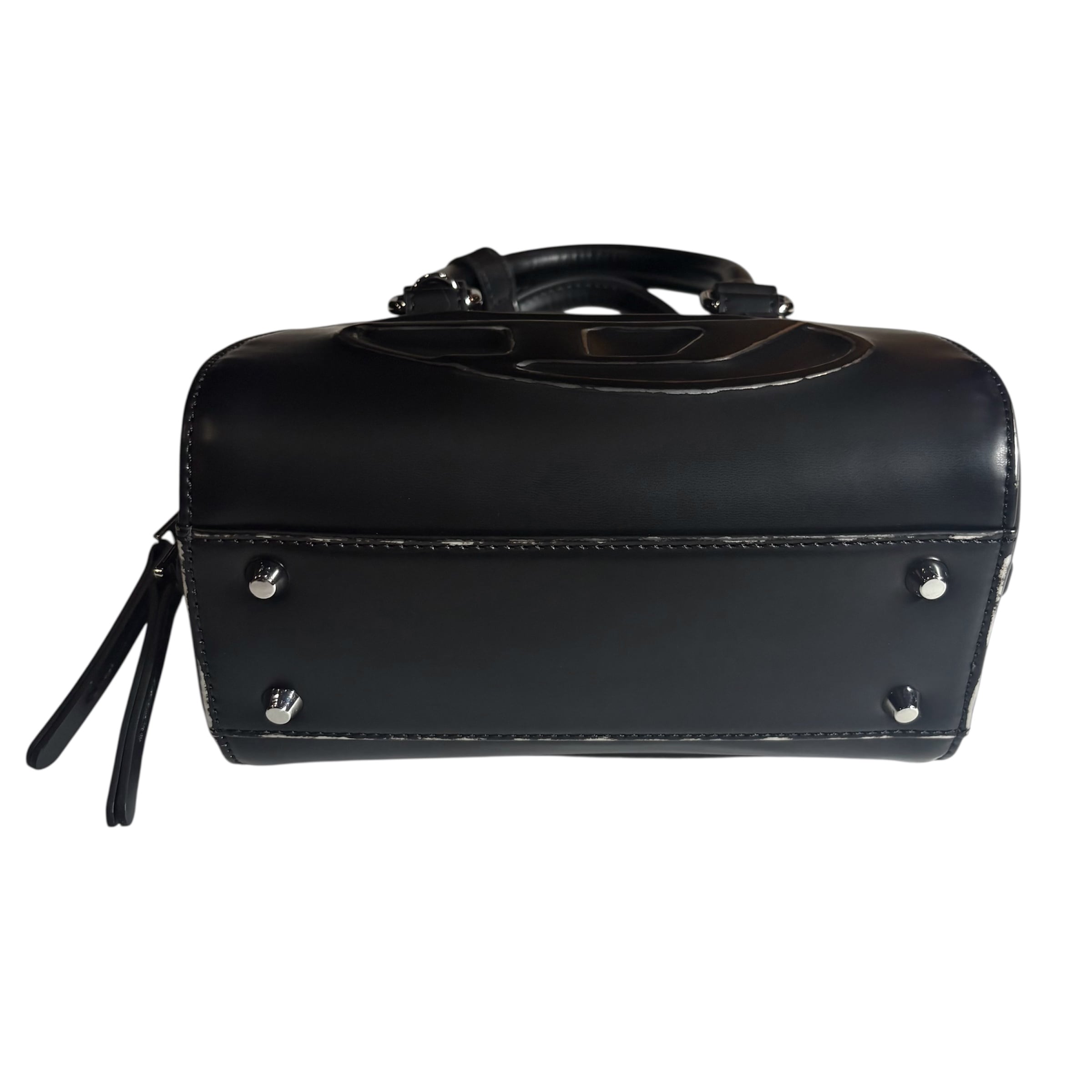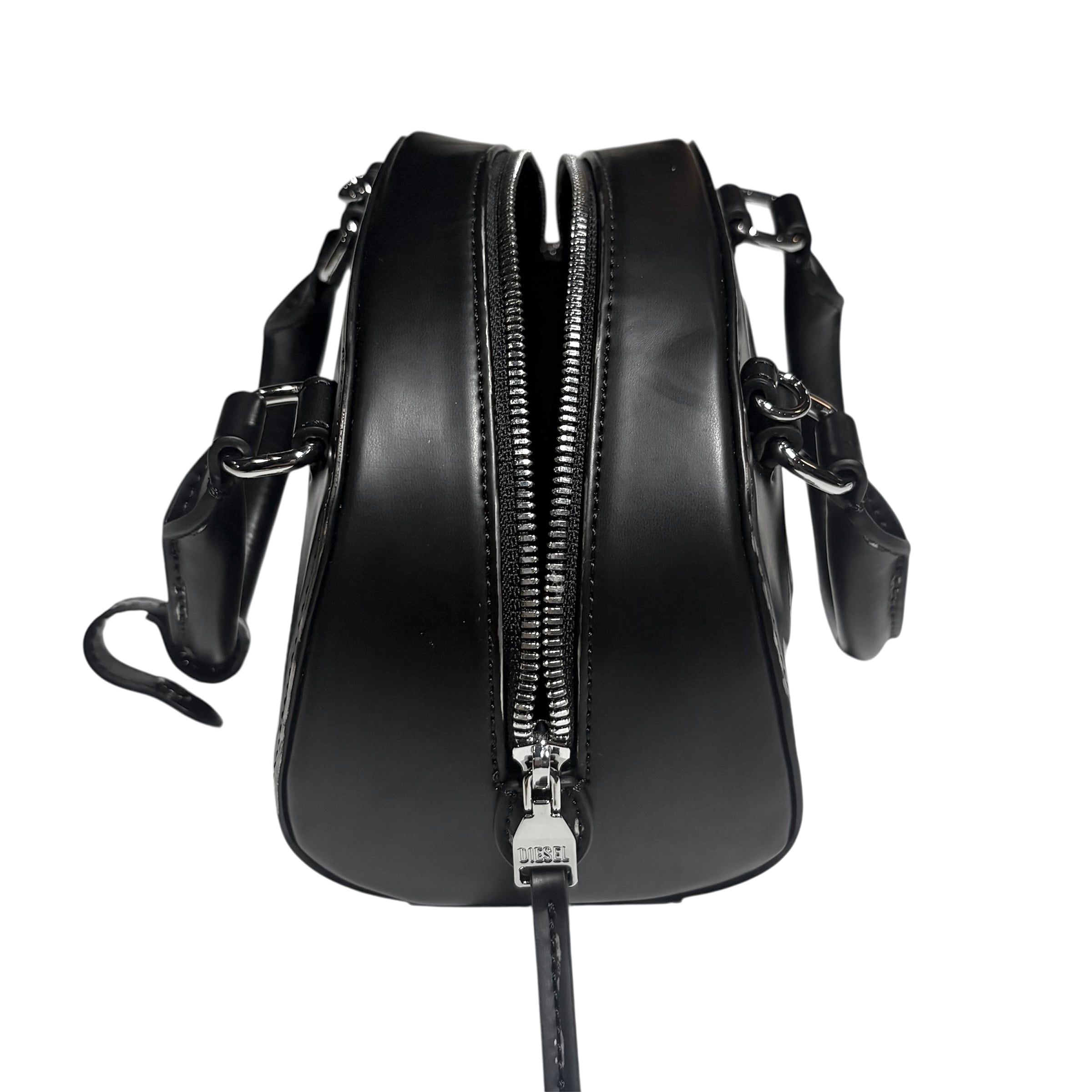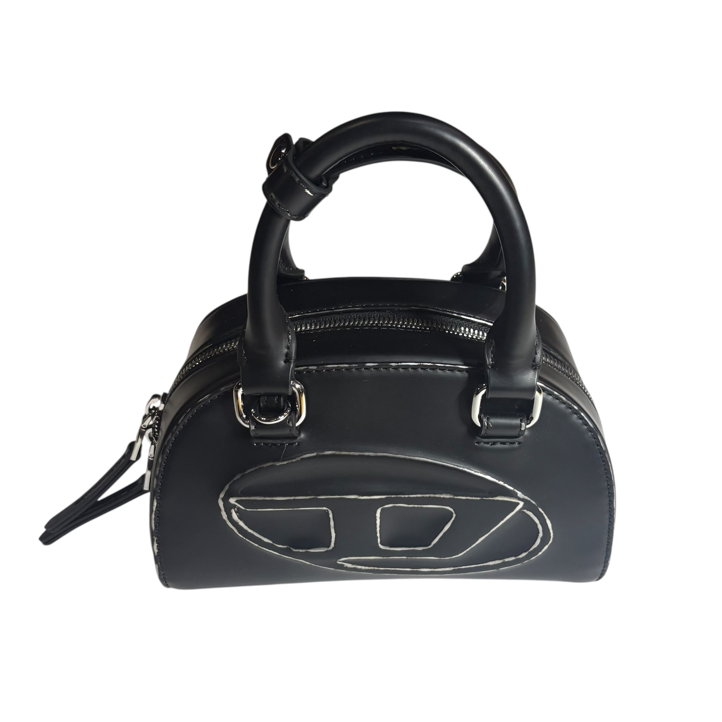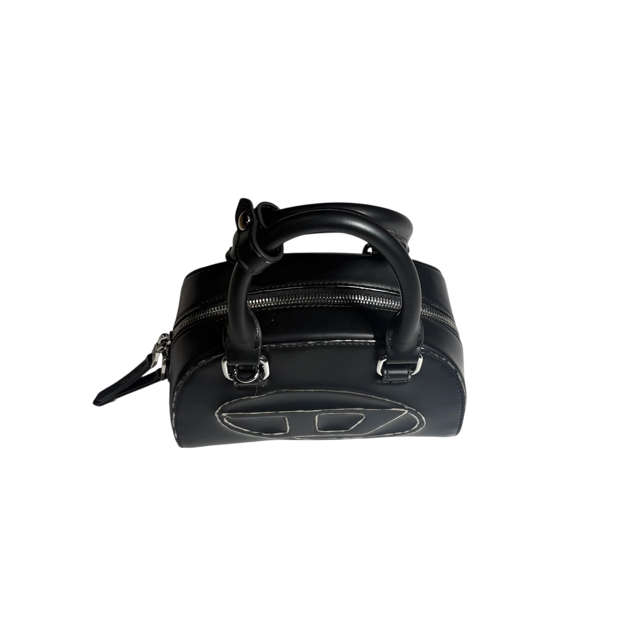 Dieselのブラックマットレザーを使用したボウリングバッグ。