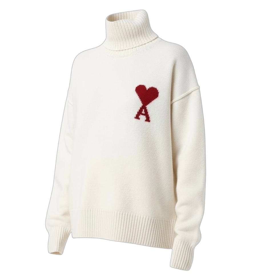 Ami De Coeurタートルネック・セーターは、リブ編みの襟が首を優しく包み込む、洗練された着心地の一着。袖口と裾はリブ編みで、ぴったりとフィットします。