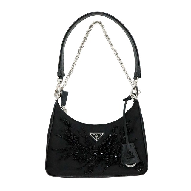 【BRAND】 PRADA 【ITEM】 PRADAより、25ss最新の極上ミニショルダーバッグ。 フロントに配置されたラインストーンのカッティングが美しい。 動くとカッティングの反射が表情豊かに変化し、全方位から楽しませてくれます。 ショルダー部分はレザー×チェーンでどちらも脱着可能。 かっこよさと可愛さが同居したPRADAの真髄を感じるアイテムです。 友達との大事な予定、素敵なディナー、旅先の外出など楽しい予定に合わせたい子ですね◎ 【SIZE】 F: 縦:17cm/横:21.5cm/マチ16.5cm/ ハンドショルダー:26cm/ 【FABRIC】 表面:ファブリック(ナイロン) ショルダー部分:(カーフスキン) 【COLOR】 Black 【Brand Story】 プラダは1913年にミラノで創業し、イタリア王室の御用達となるほどの高品質な革製品を作っています。その後、ミウッチャ・プラダがデザイナーに就任し、現代的で革新的な素材やデザインで世界的なブームを巻き起こしました。 【発送について】 ご注文から4営業日以内に発送いたします。 【返品・交換】 不良品以外の返品交換はお受けしておりません。 注文後に連絡が無く期限以内に支払いが行われずキャンセルになった場合は、今後のご注文はお断りさせて頂く場合がございます。 予めご了承ください。 商品についてのご質問等ございましたら、お気軽にお問い合わせ下さいませ◎
